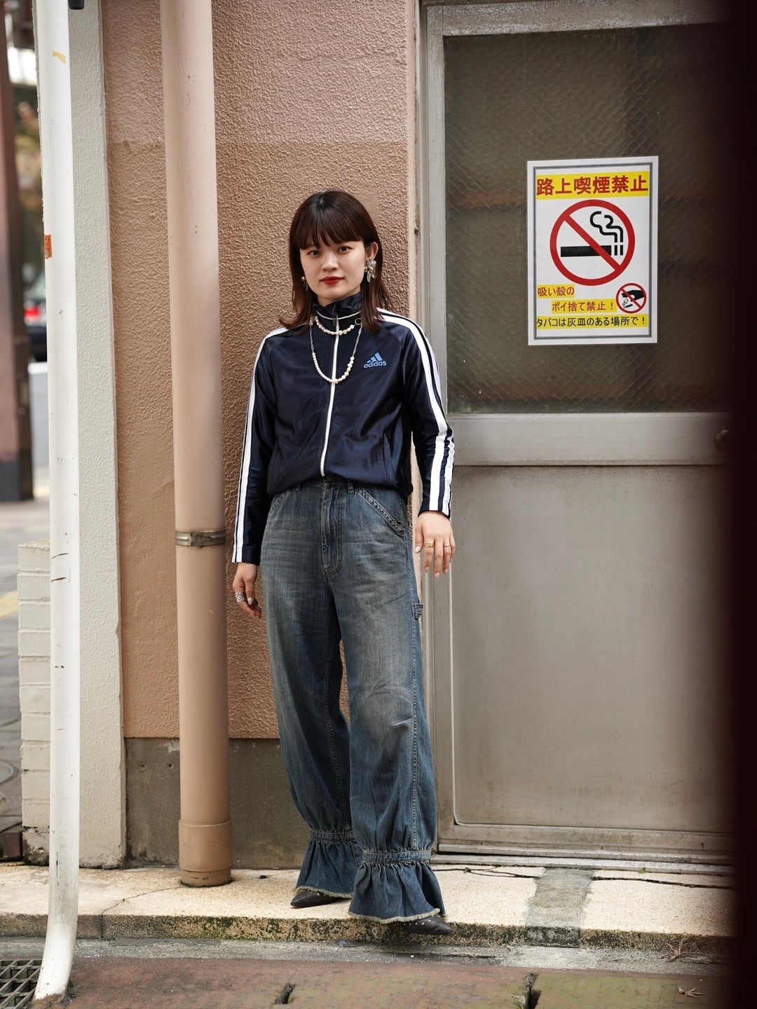 USEDのデニムパンツとUSEDゴブラン生地を再構築して仕立てた、唯一無二のリメイクデニム。