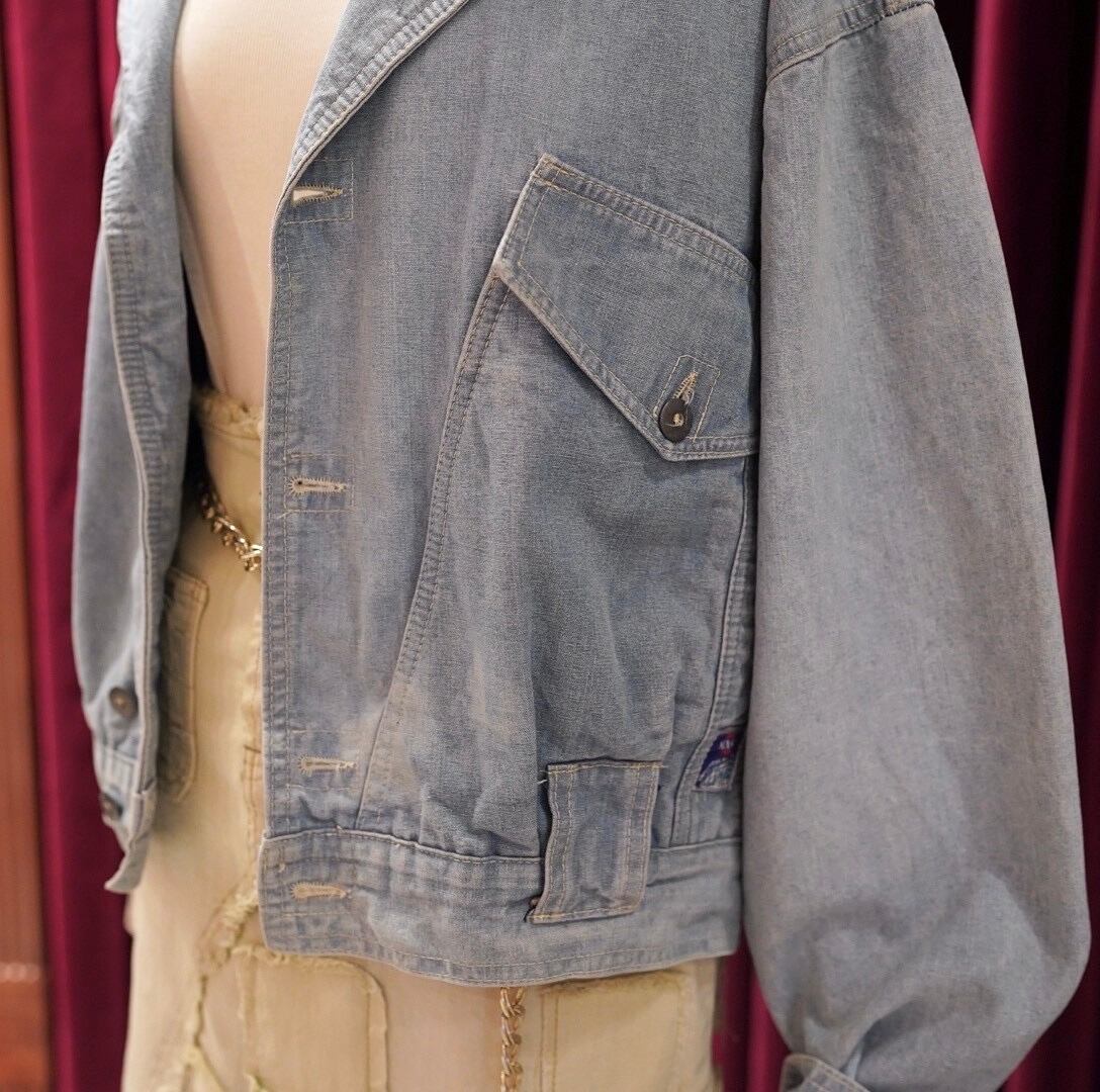 襟の形がジャケット風になっていてオープンカラーのデニムジャケット。