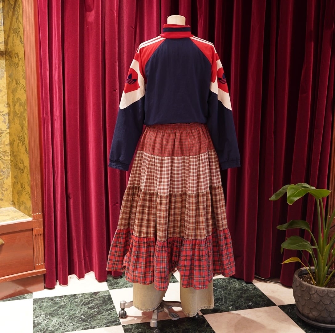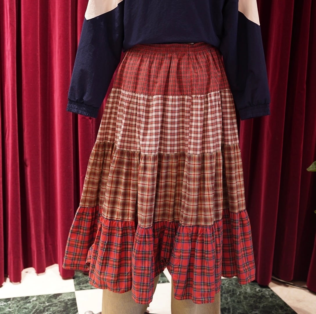 check tiered long skirt