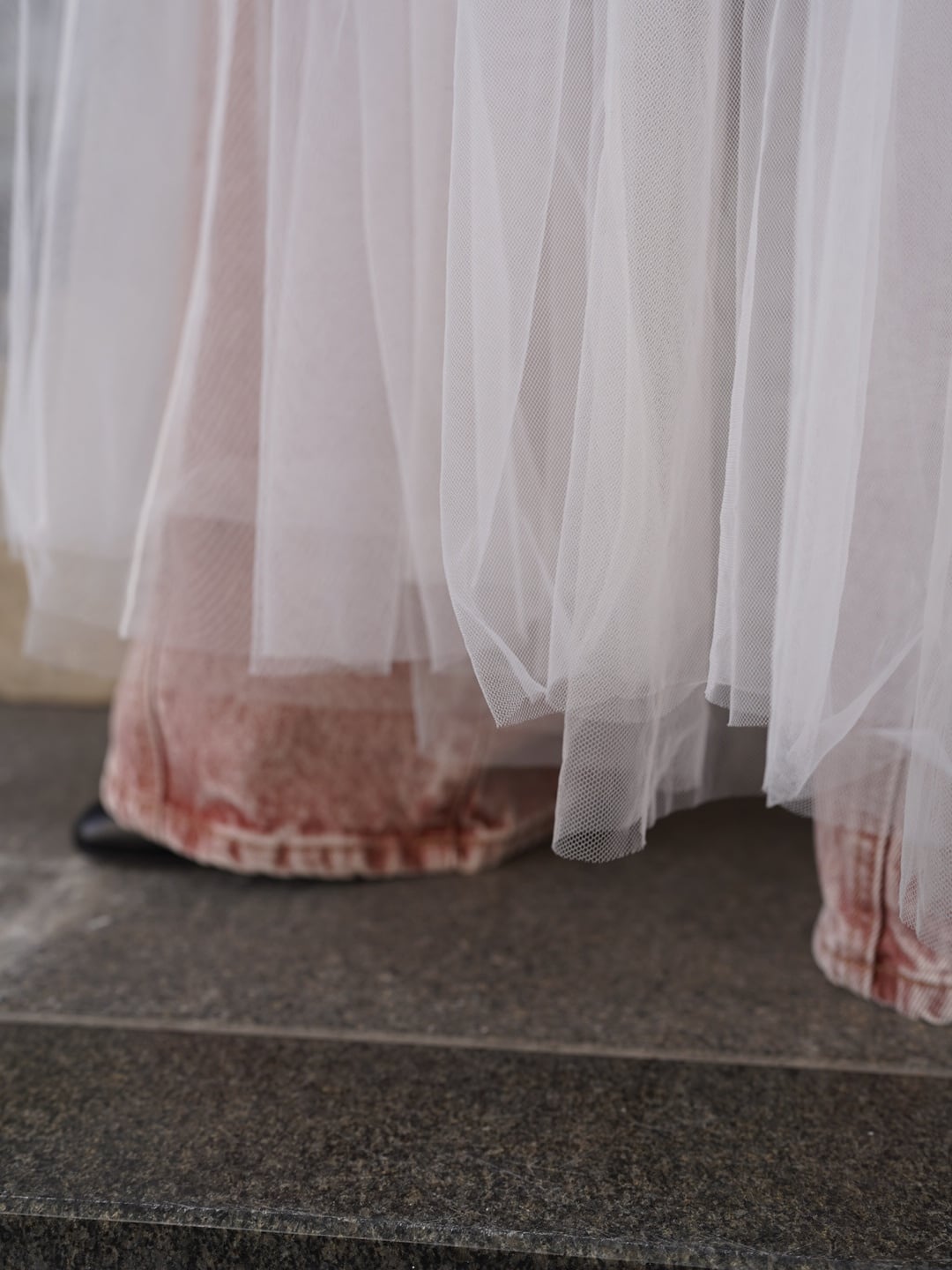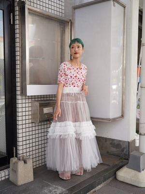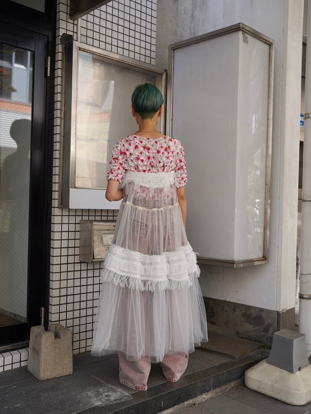 微配色のチュールを使用しているので立体感のあるシルエットに。