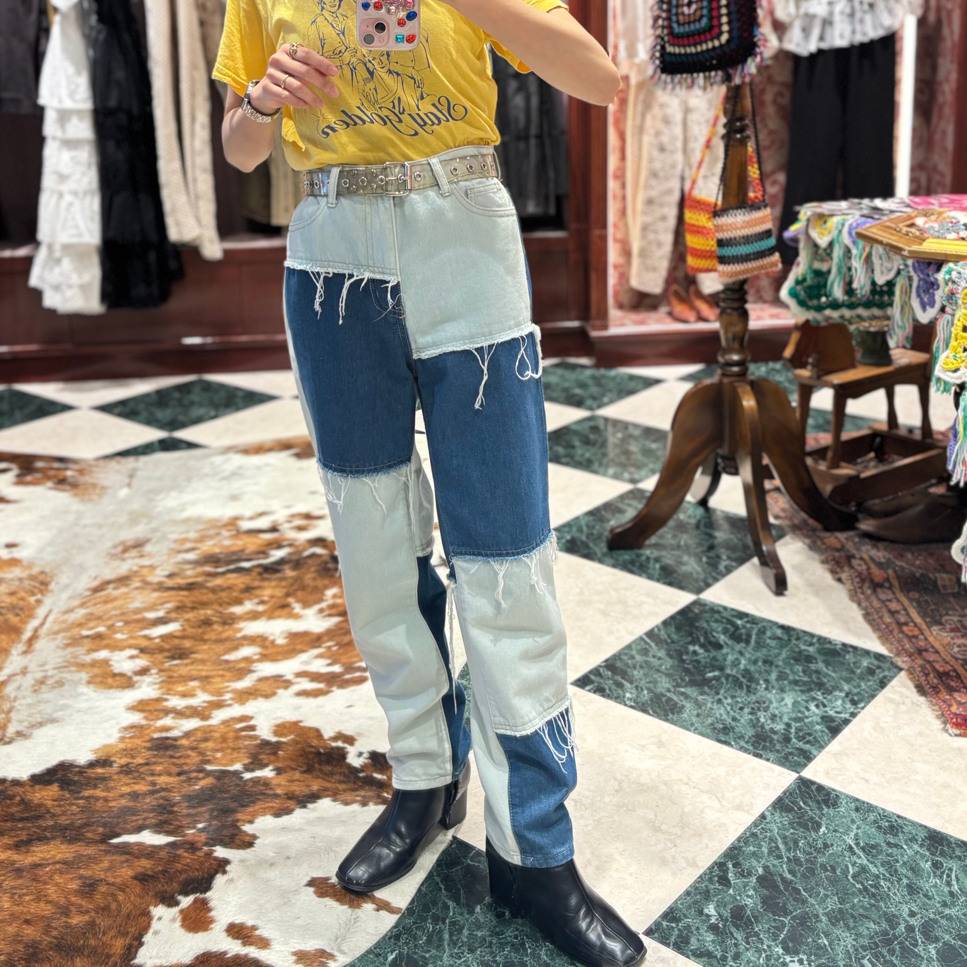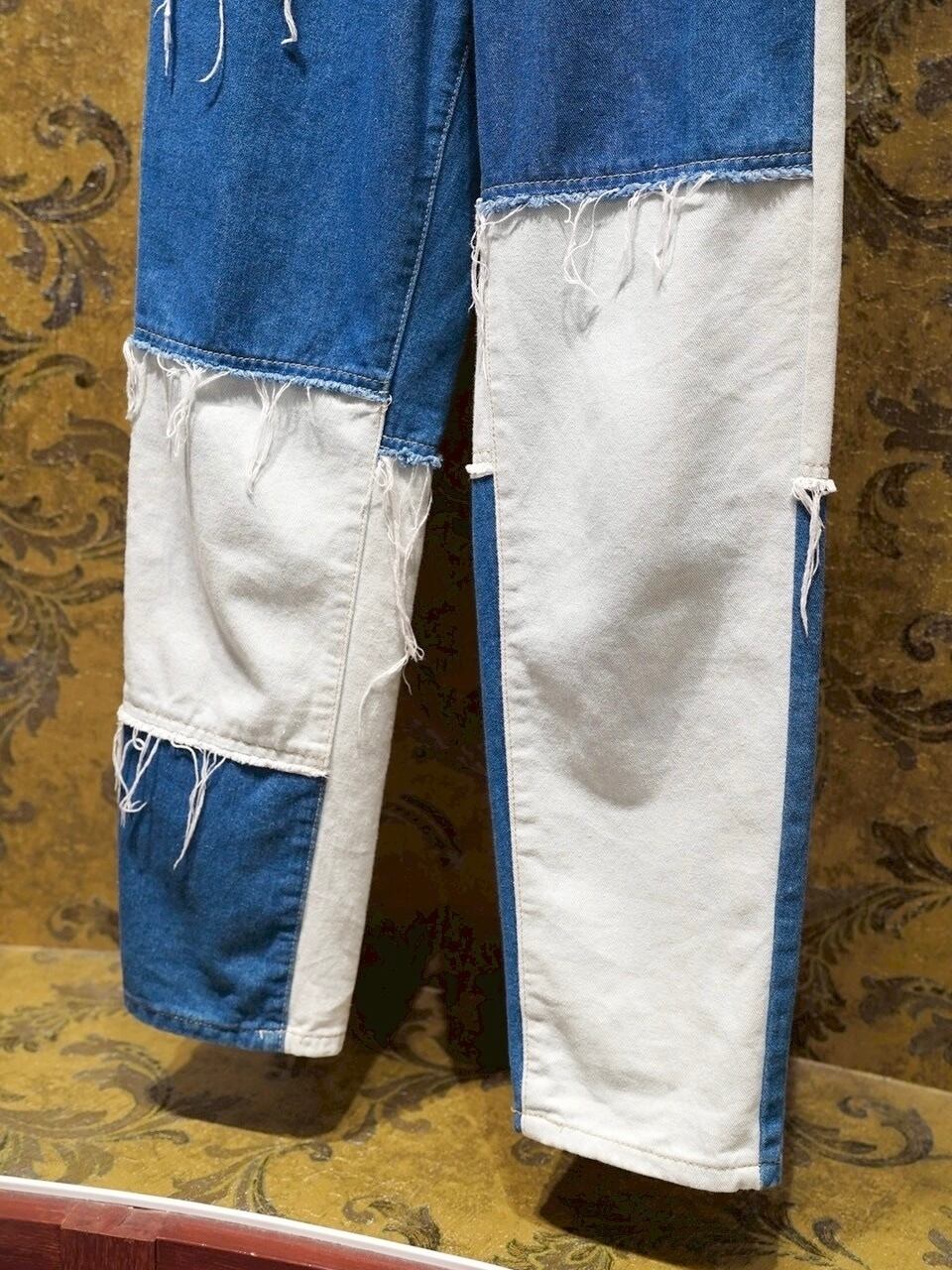 ブルーとホワイトのデニムを組み合わせたパッチワークデザイン。