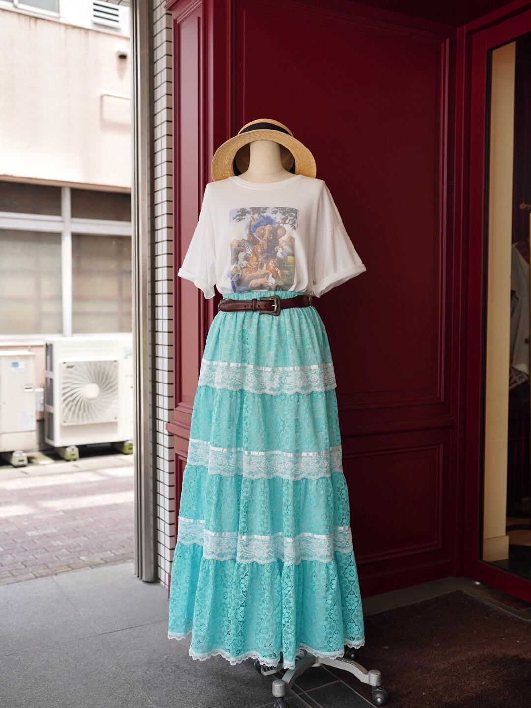 爽やかなミントブルーに、ホワイトレースが映えるレディな1枚。