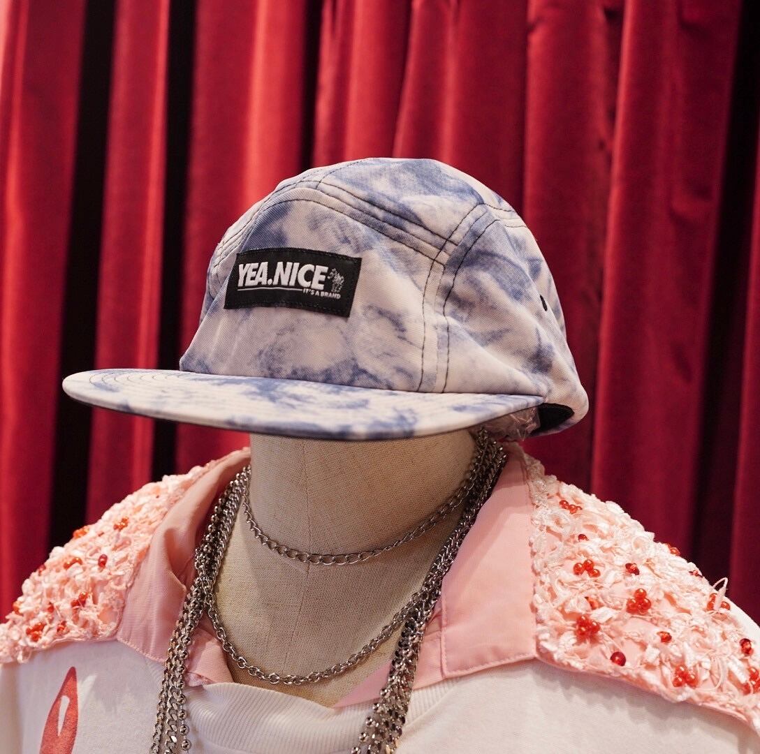 爽やかなブルー系のタイダイ柄が目を引く、軽やかジェットキャップ。