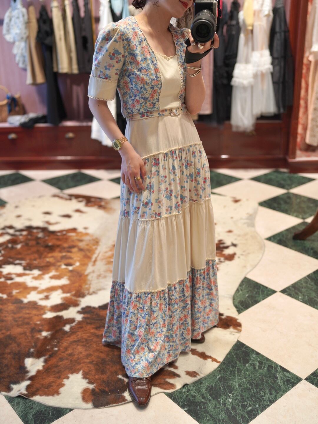 、レトロムード漂うティアードドレスです。