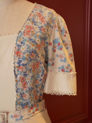 花柄と無地の切り替えが印象的な