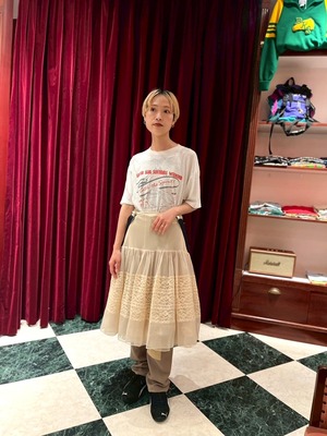 やわらかなベージュに、繊細なレースが映えるランジェリーライクなスカート。