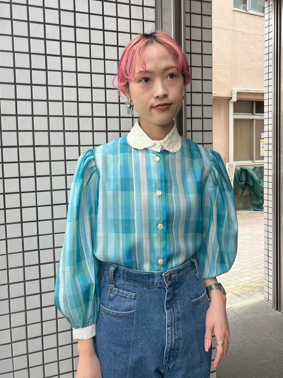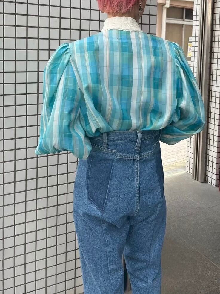 水色のチェック柄が爽やかで、コーデに抜け感をプラスしてくれます。