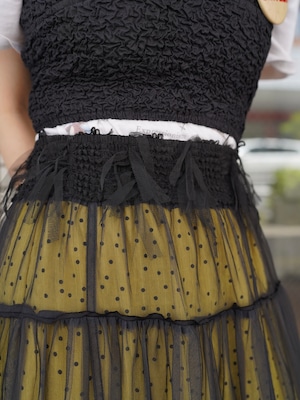 微配色のチュールを使用しているので立体感のあるシルエットに。