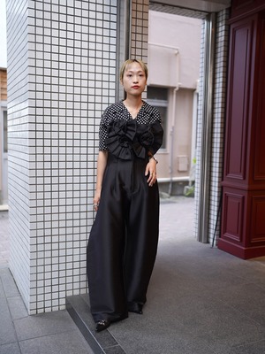 同じ生地展開したコクーンハイウエストパンツもございます。