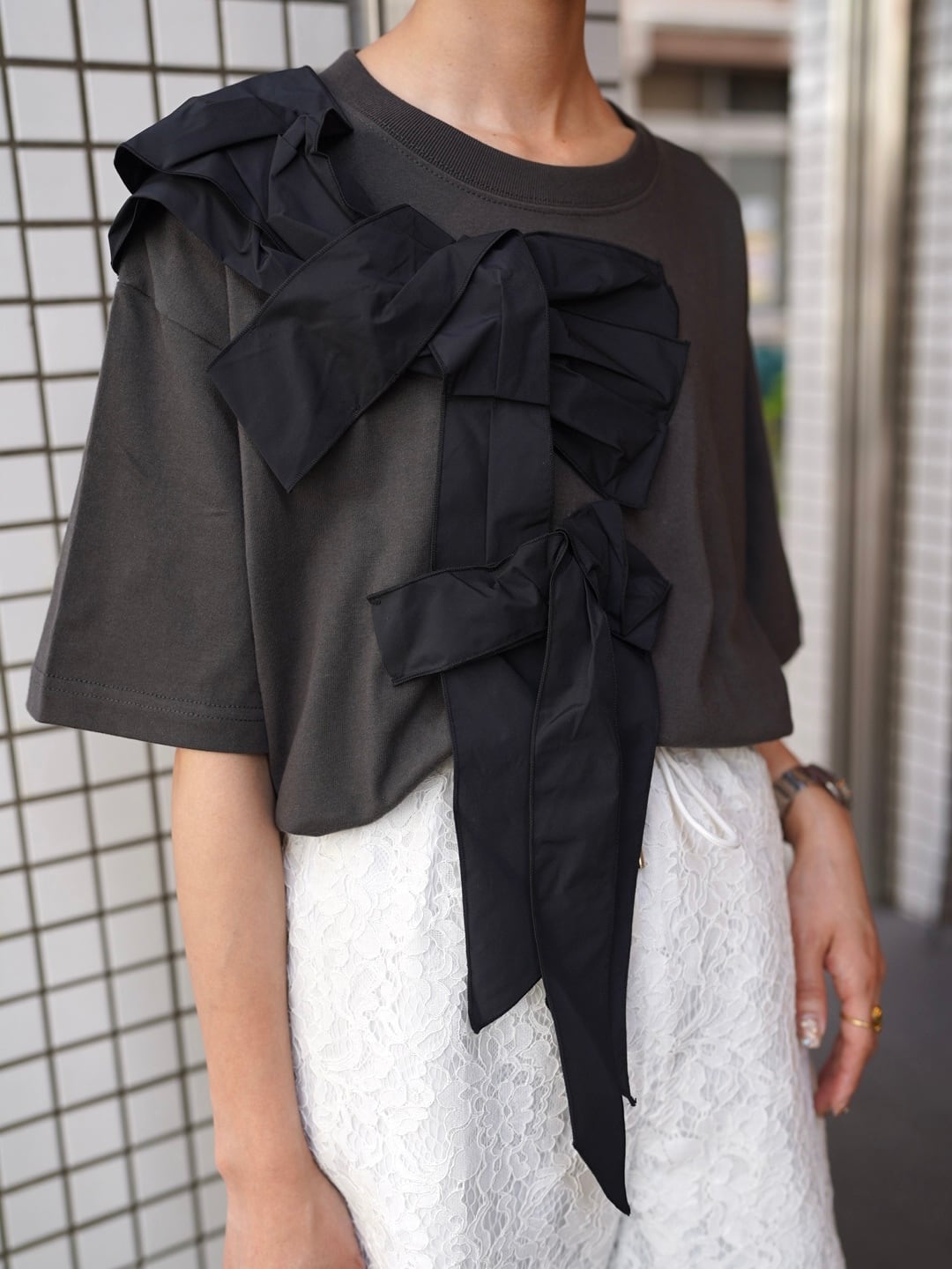 MAISON SPECIAL(メゾンスペシャル)"Twisted Ribbon Oversize T-shirt【Charcoal Gray】"