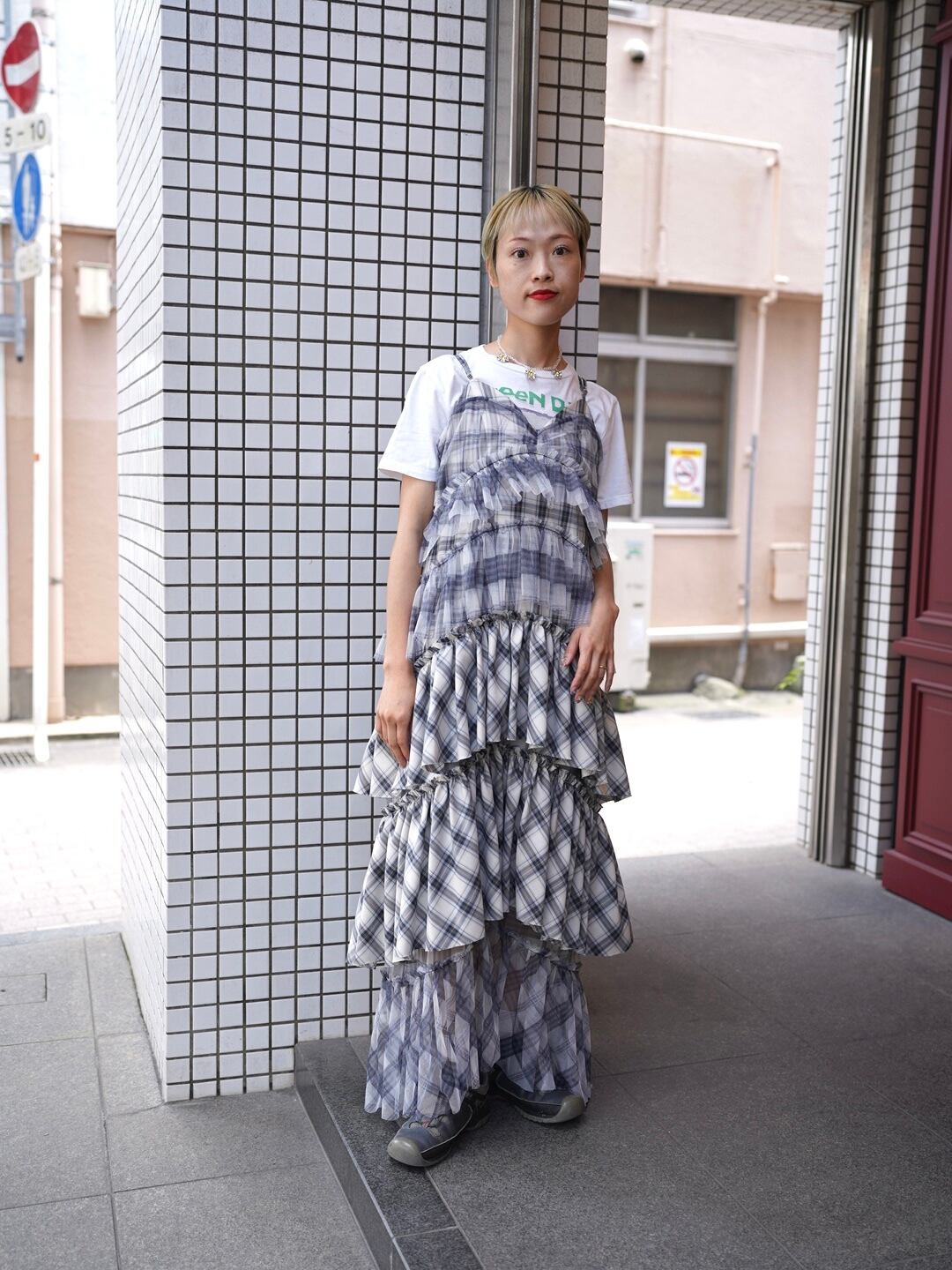 ふんわりと広がる5段のティアードデザインが魅力的なチェックキャミワンピース。異なる2種類の素材を組み合わせることで、立体感と奥行きのある表情を生み出します。軽やかで動きのあるシルエットが特徴で、1枚で存在感のあるスタイリングが完成するアイテムです。