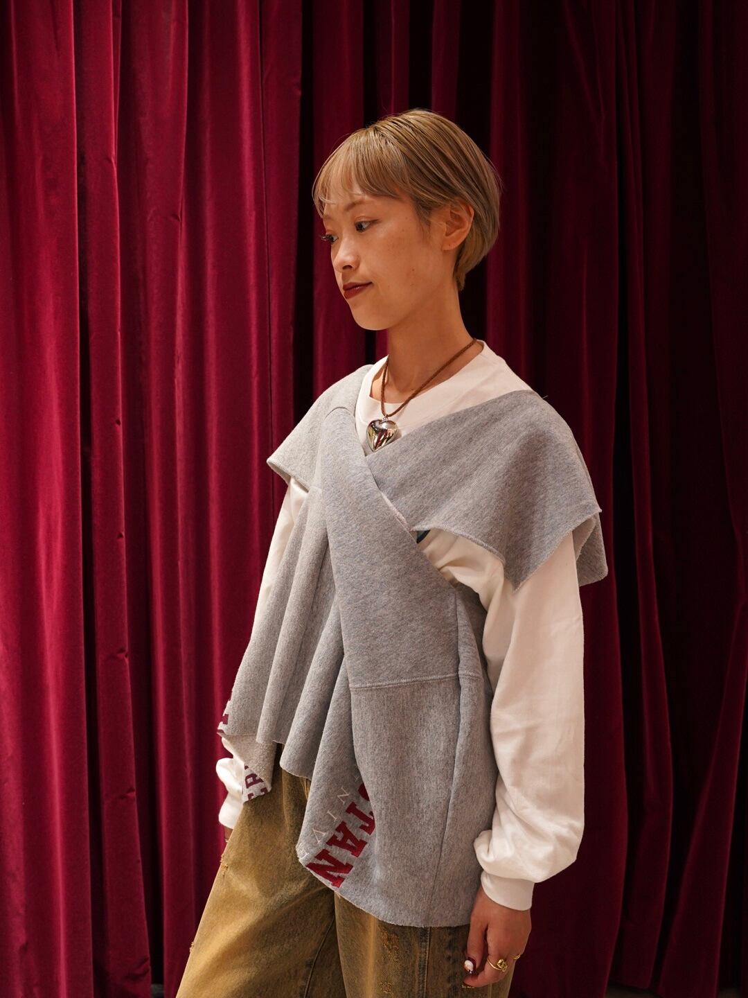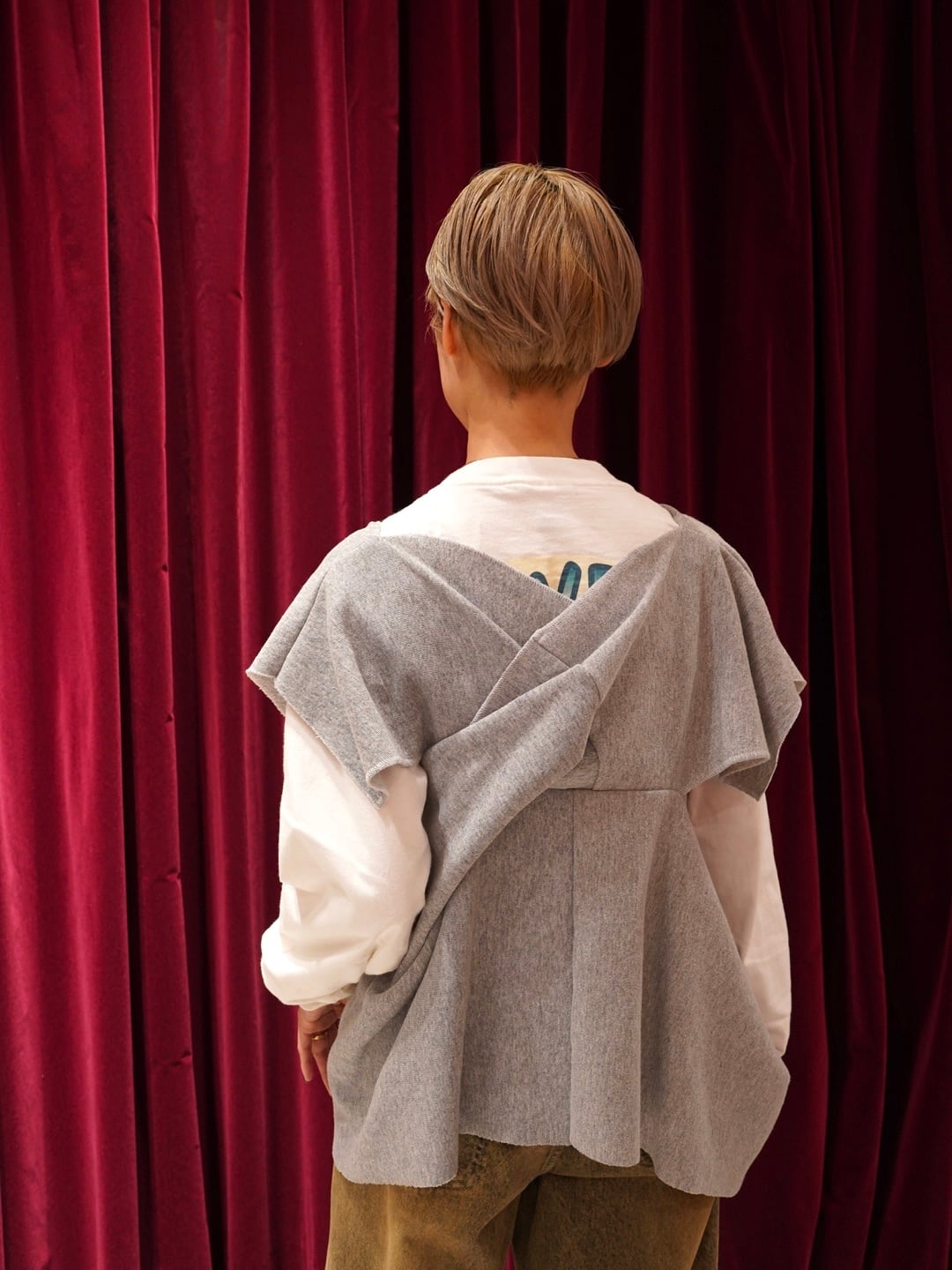 横方向に大胆なカットを加え、立体的に仕立て直したcircaのリメイクトップス。