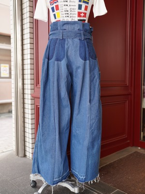 USEDのオーバーオールを2本使用し、解体・再構築したスペシャルなワイドパンツ。