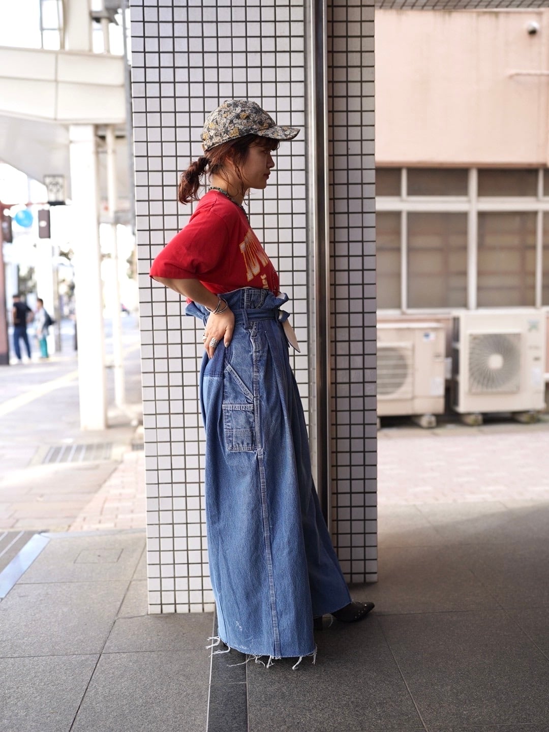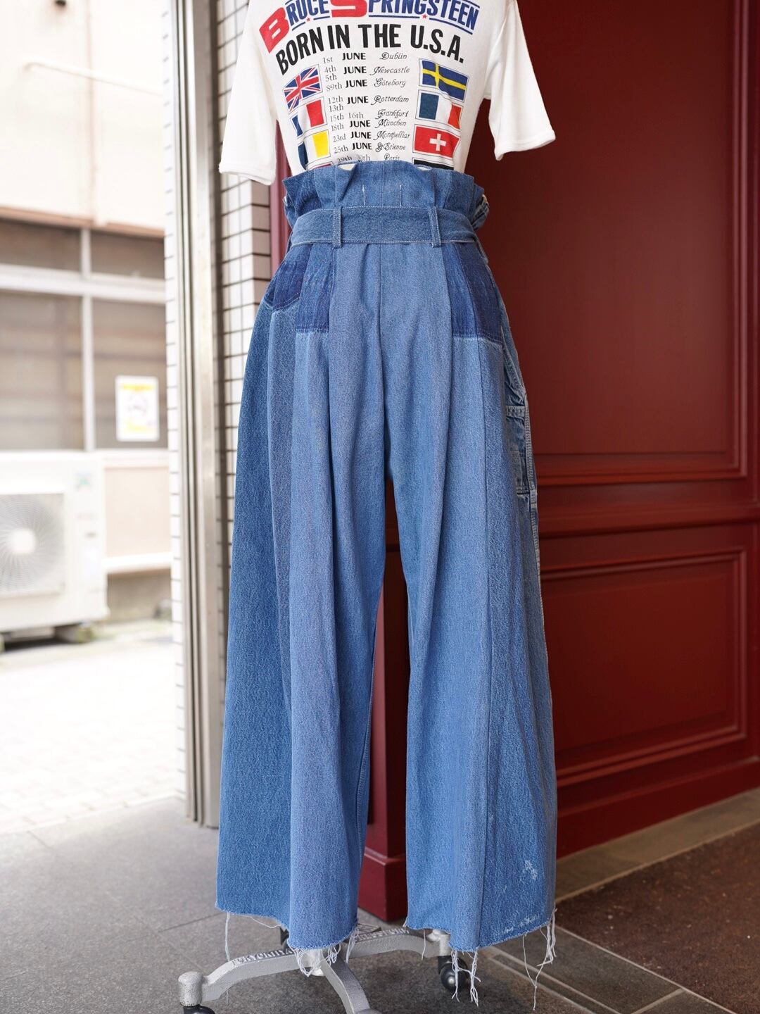 USEDのオーバーオールを2本使用し、解体・再構築したスペシャルなワイドパンツ。