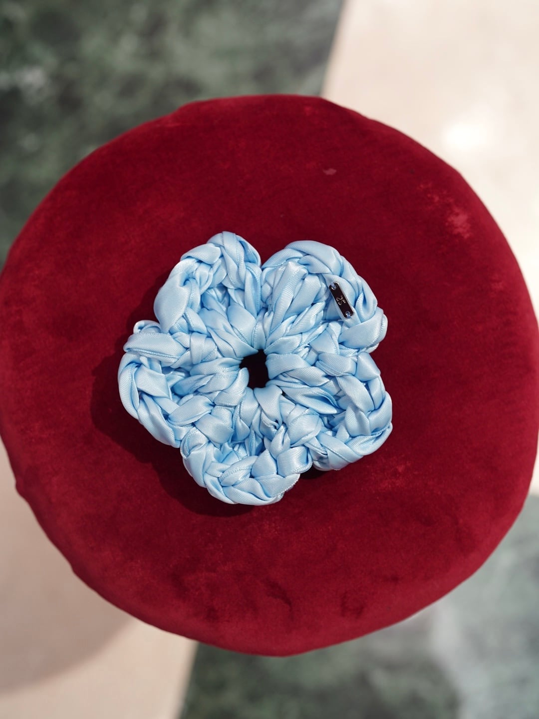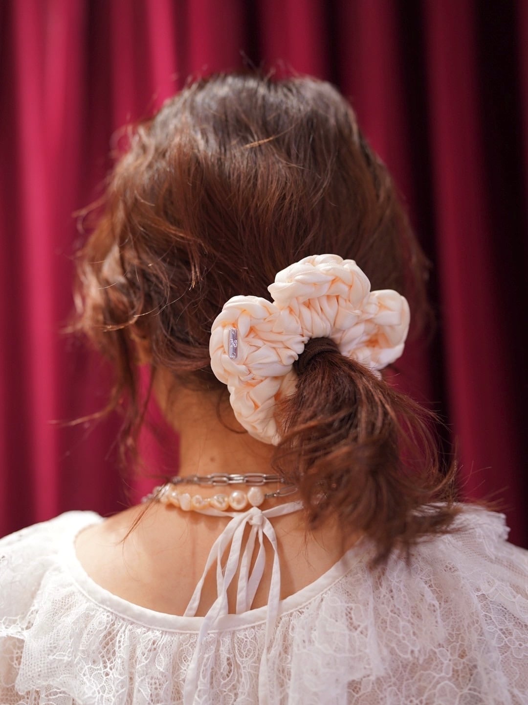 ■華やかさと可憐さを兼ね備えた、フラワーモチーフが目を惹くシュシュ。