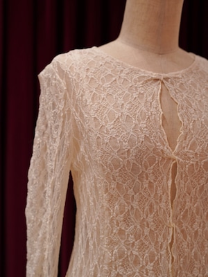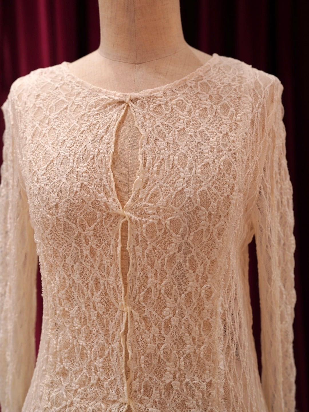 ・全体をレースで構成しながらも、パターンに工夫を凝らし、1枚で着映えするデザインに仕上げています。