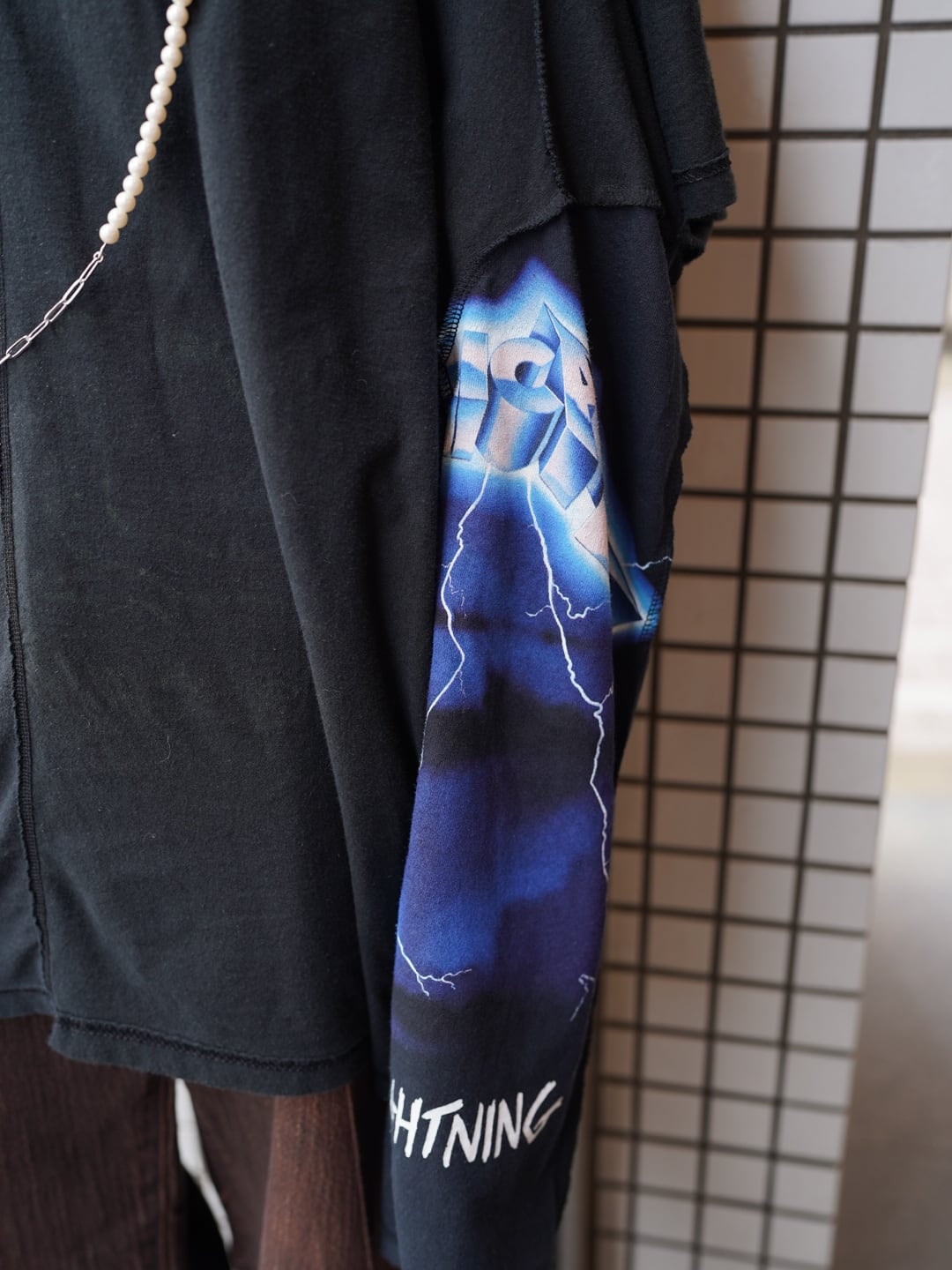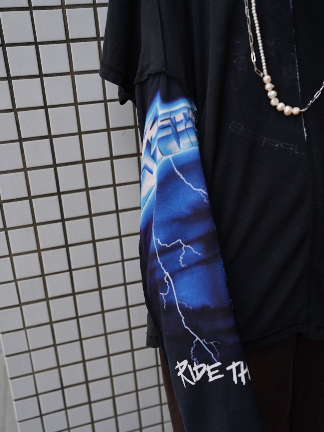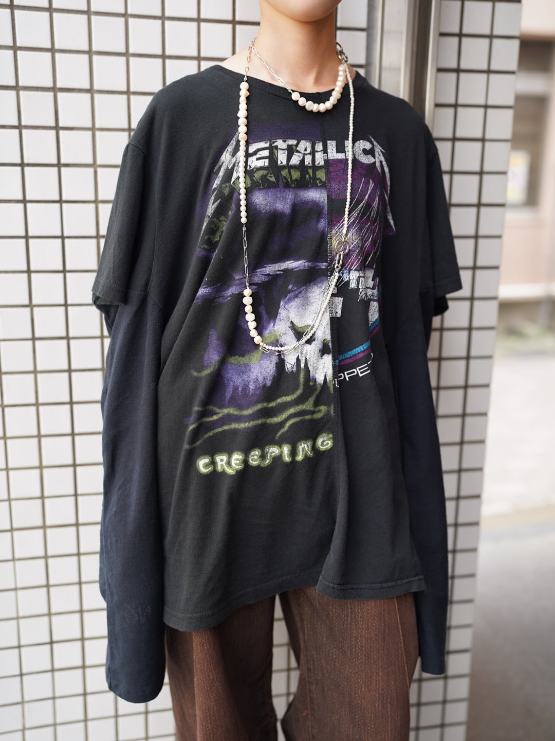 USEDのコンサートTシャツを3枚組み合わせて再構築した、存在感抜群のロングスリーブトップス。