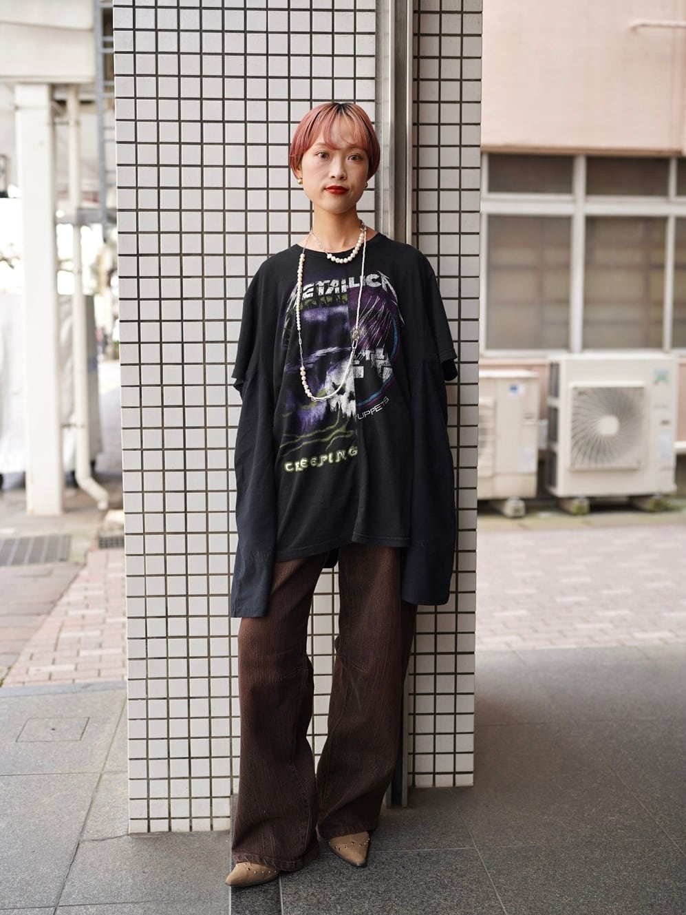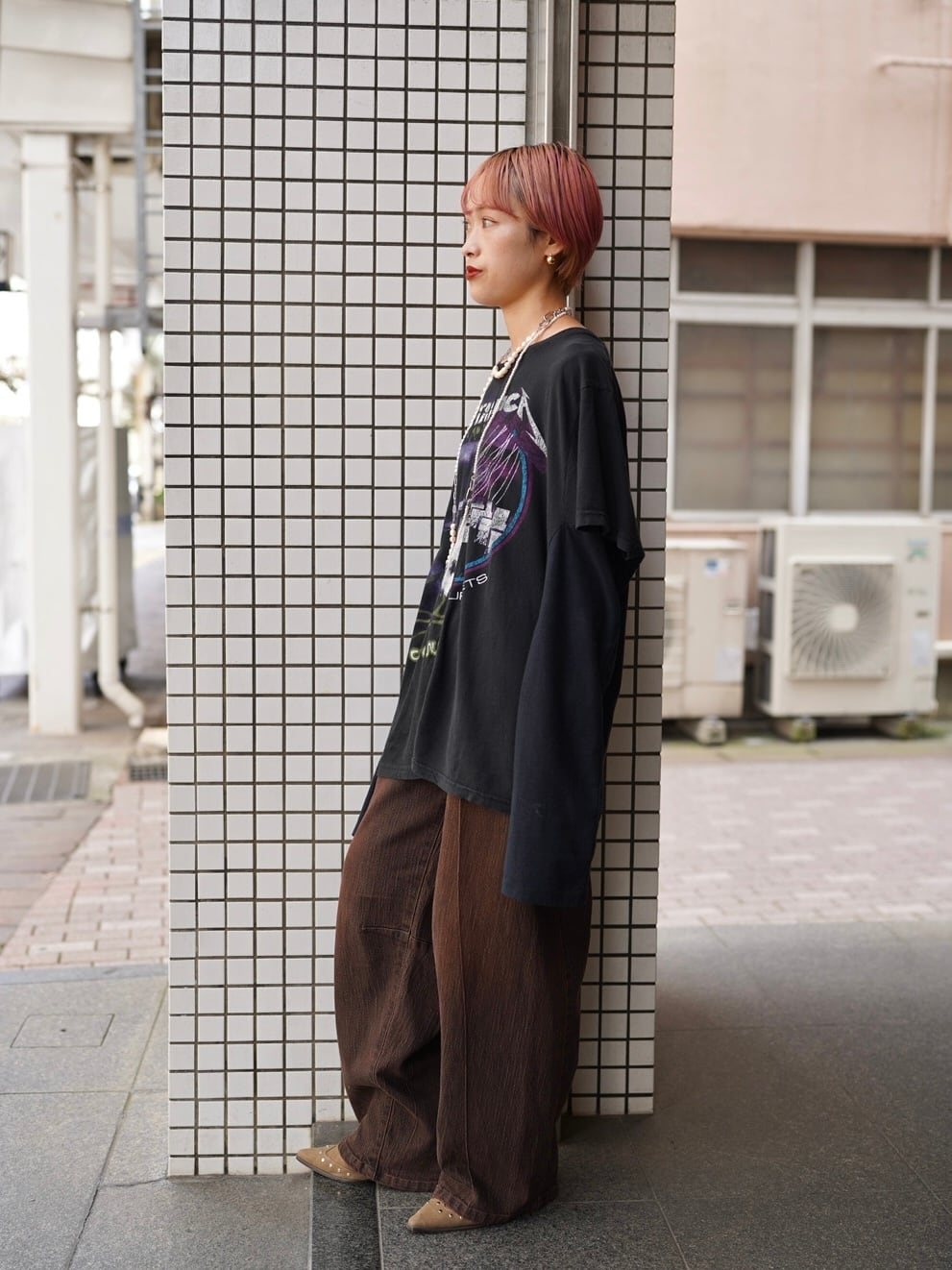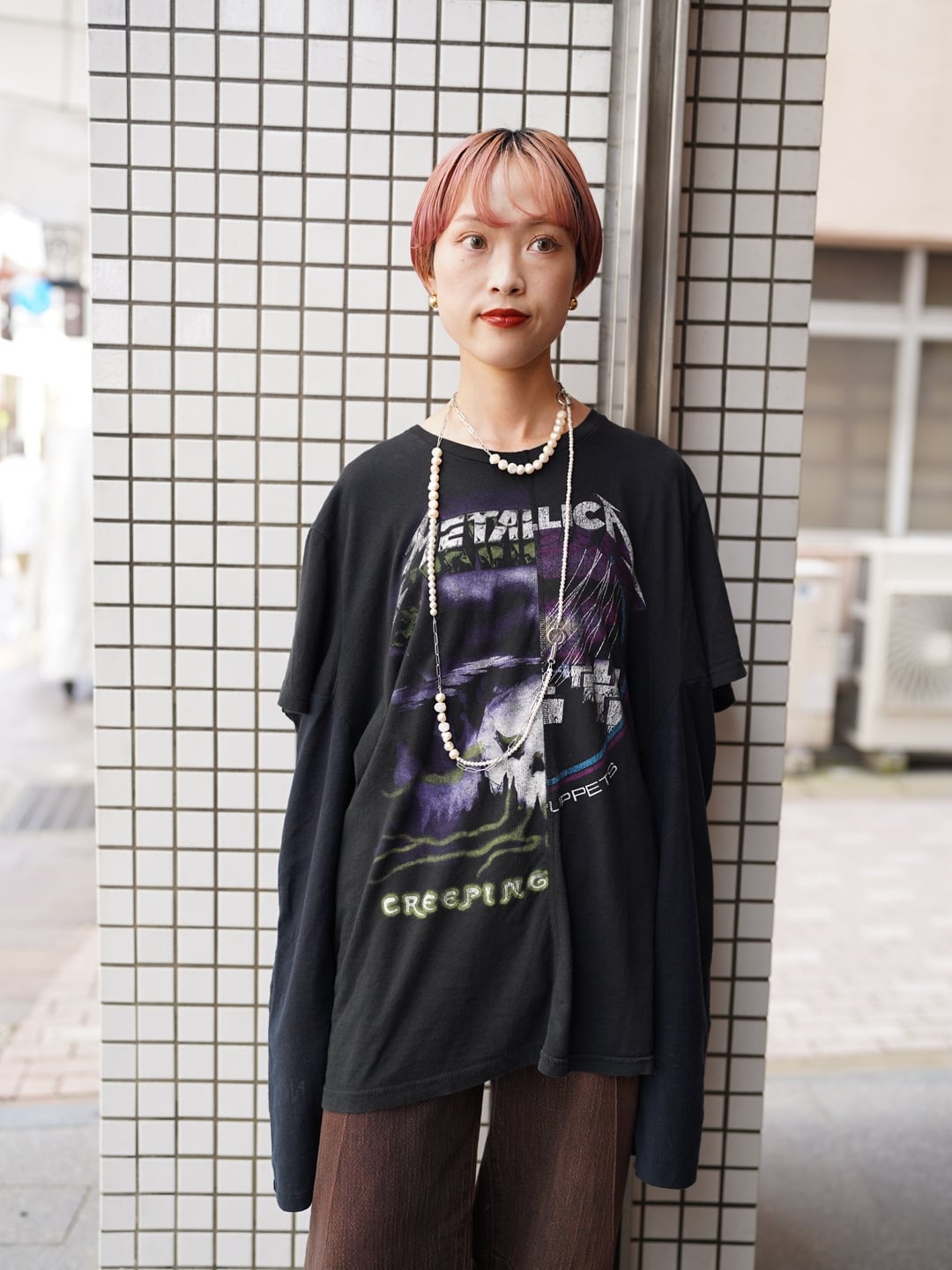 USEDのコンサートTシャツを3枚組み合わせて再構築した、存在感抜群のロングスリーブトップス。