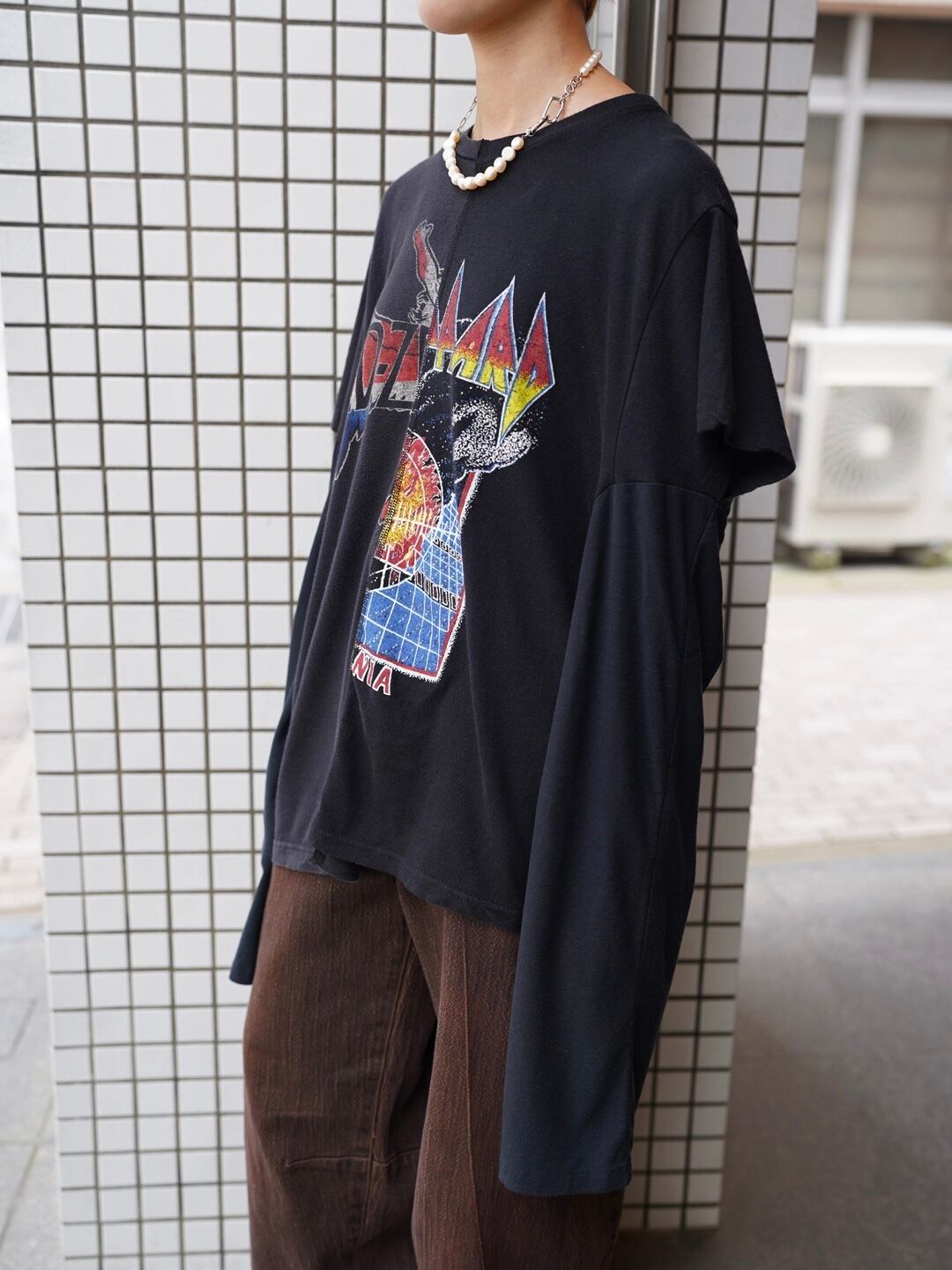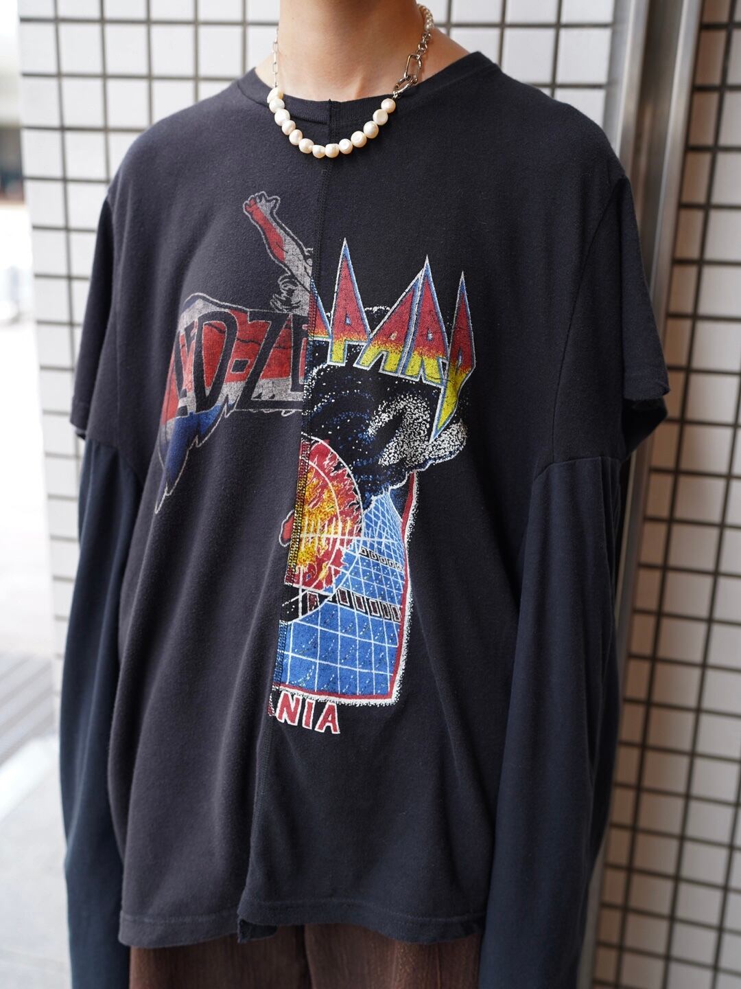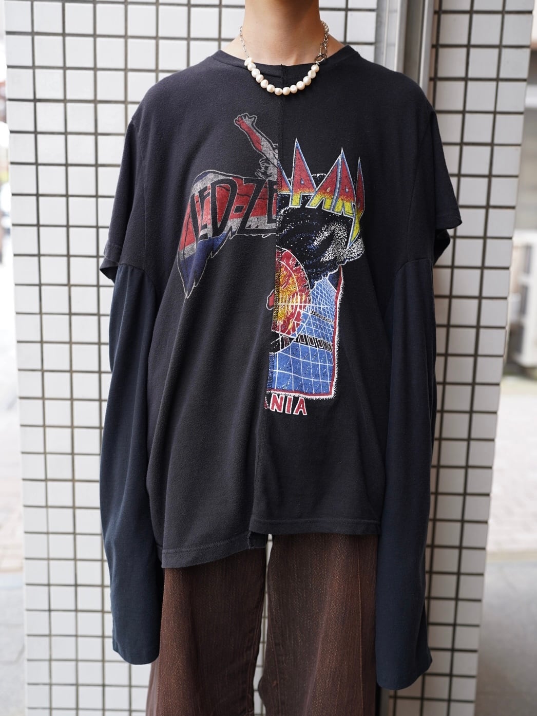 USEDのコンサートTシャツを3枚組み合わせて再構築した、存在感抜群のロングスリーブトップス。
