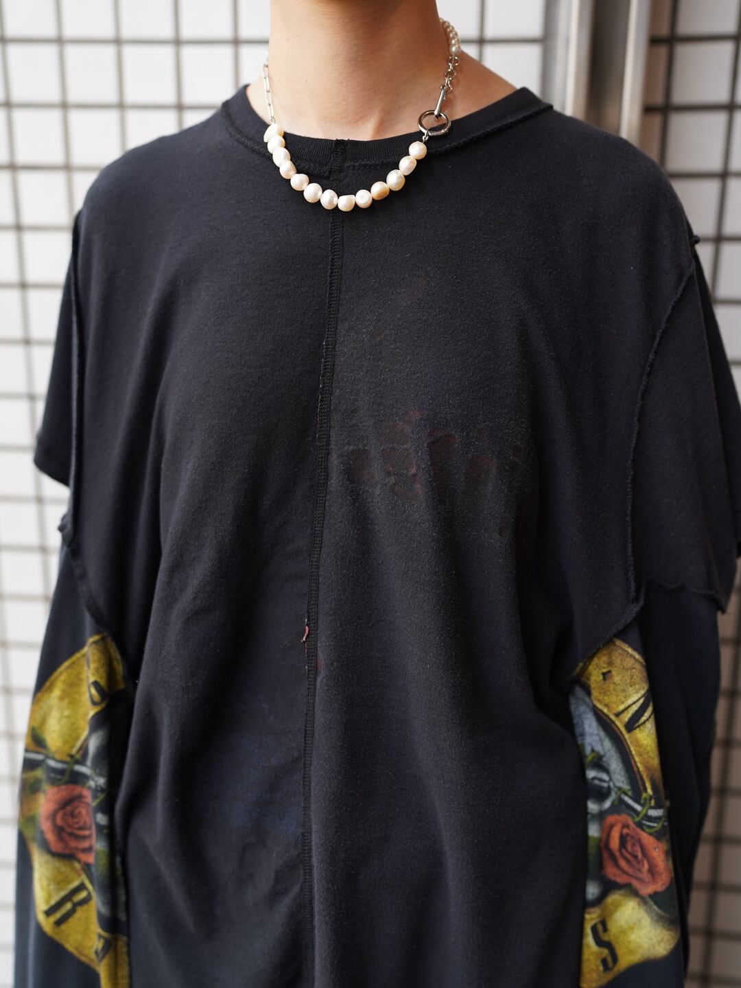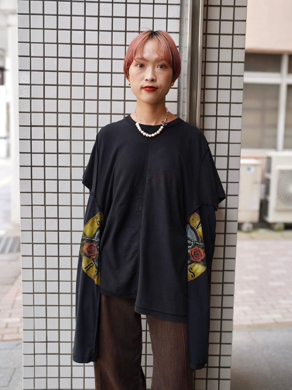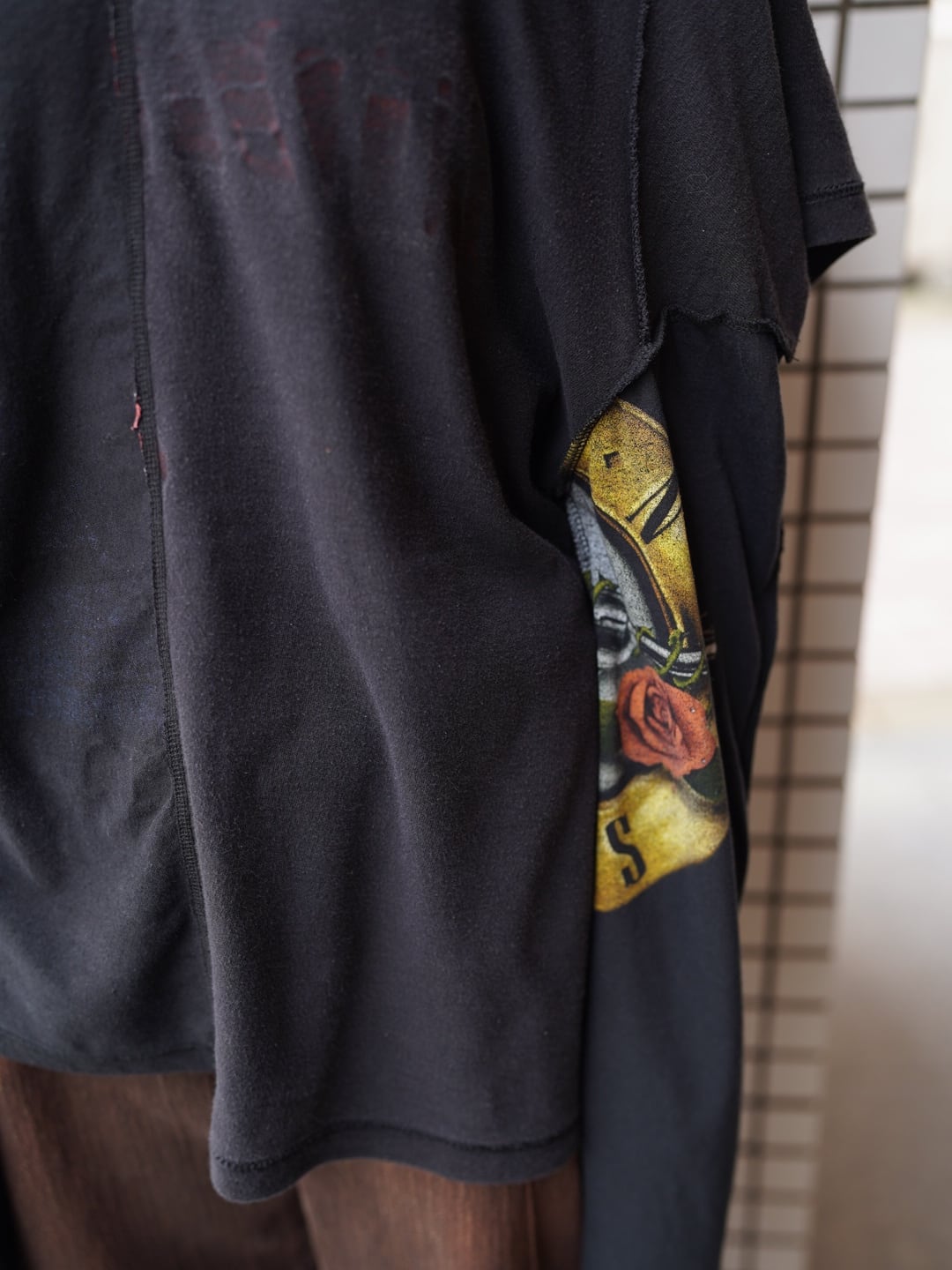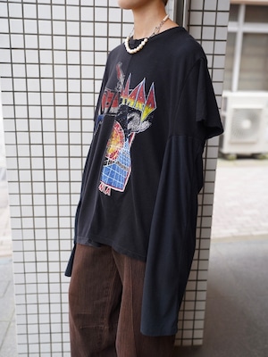 USEDのコンサートTシャツを3枚組み合わせて再構築した、存在感抜群のロングスリーブトップス。