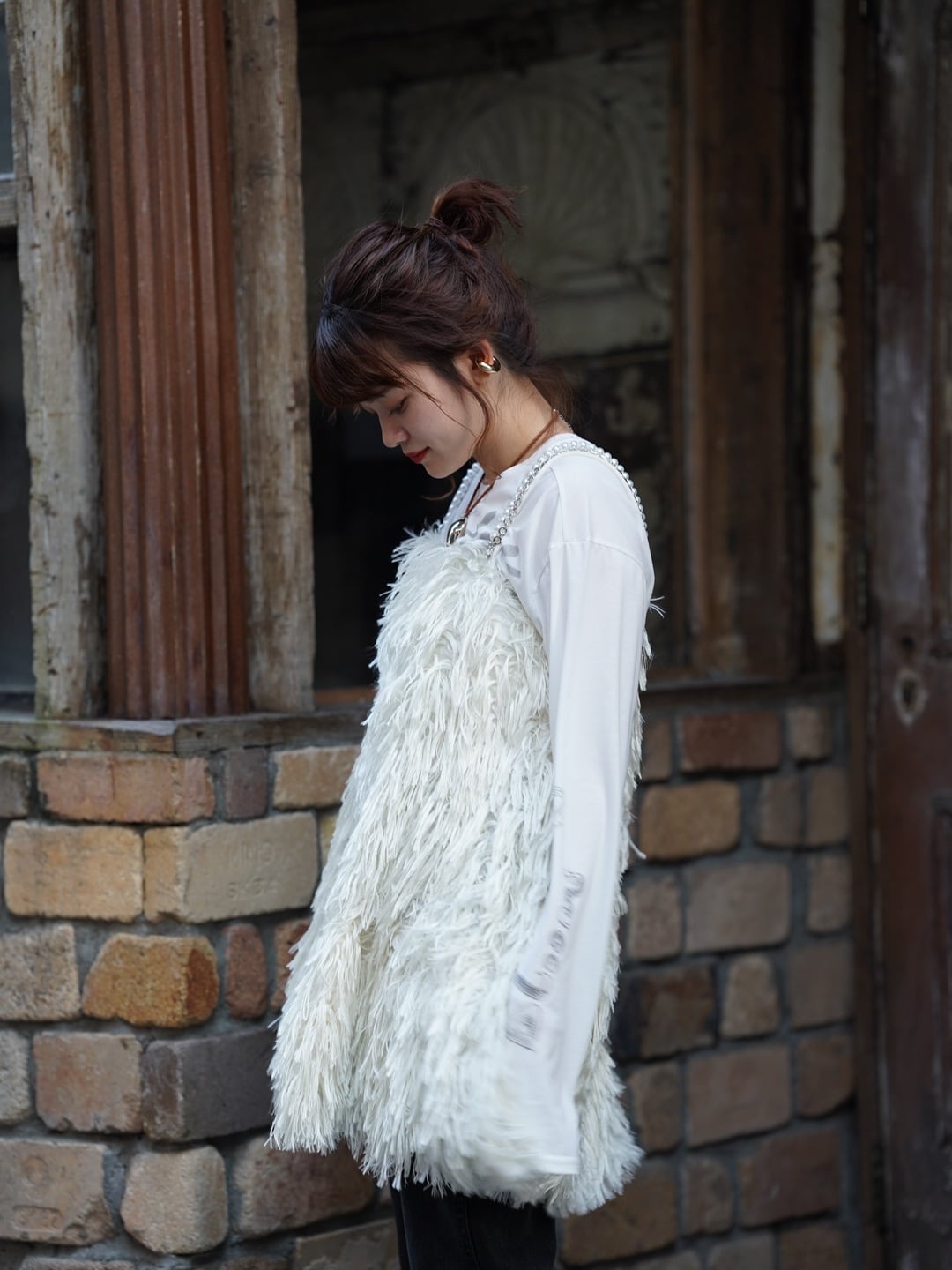 ・フェザーのような、ファーのような、ボリュームのある見た目がキャッチーなアイテム。