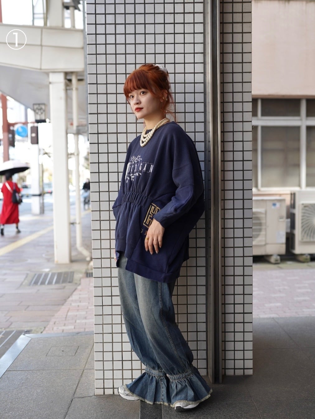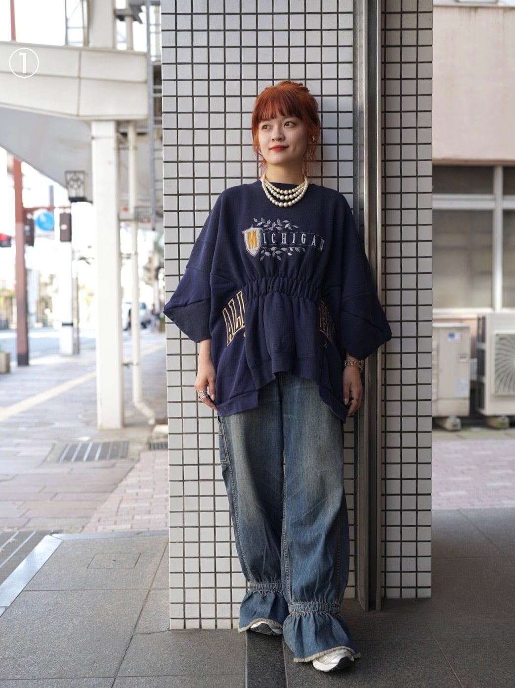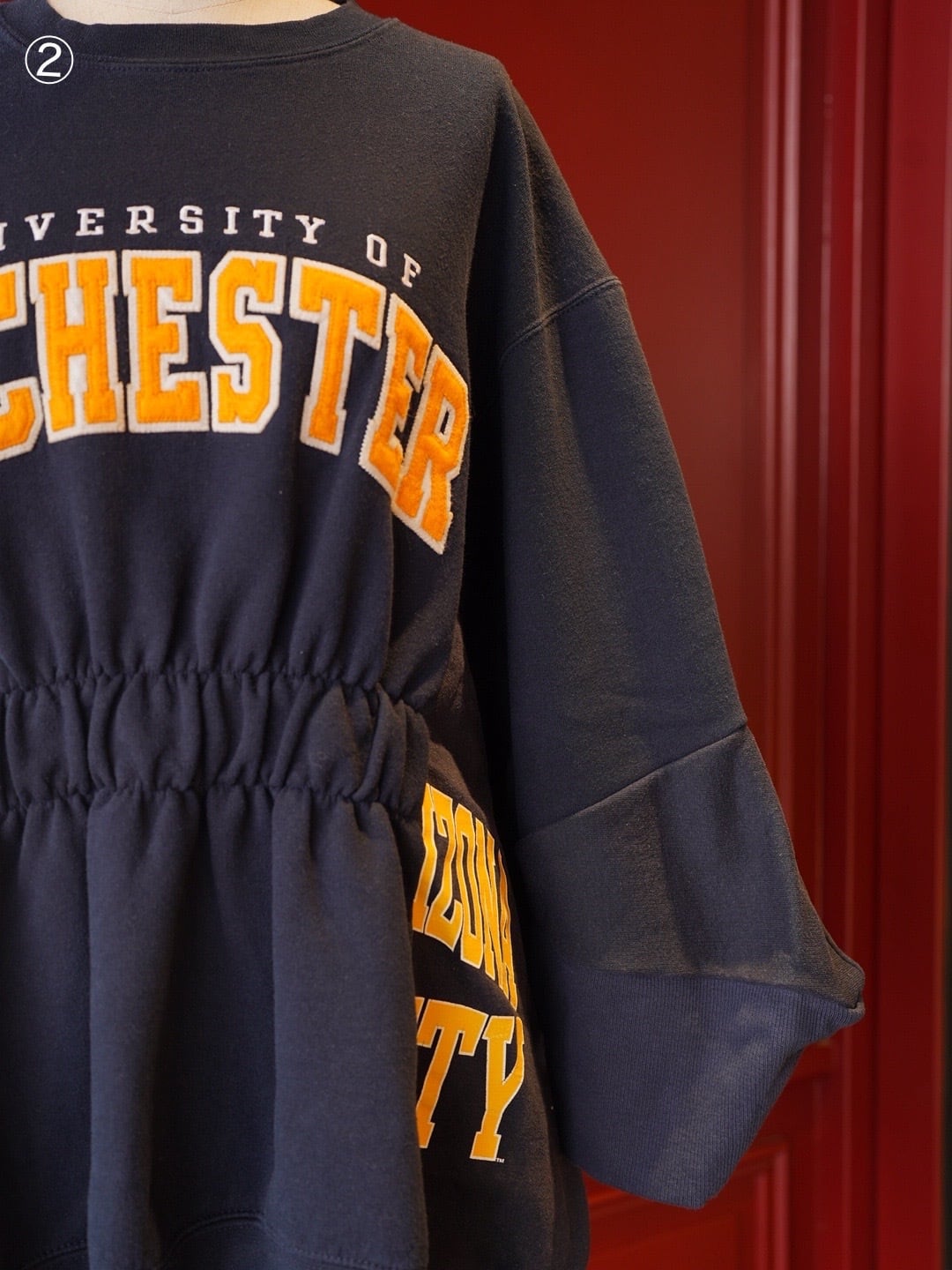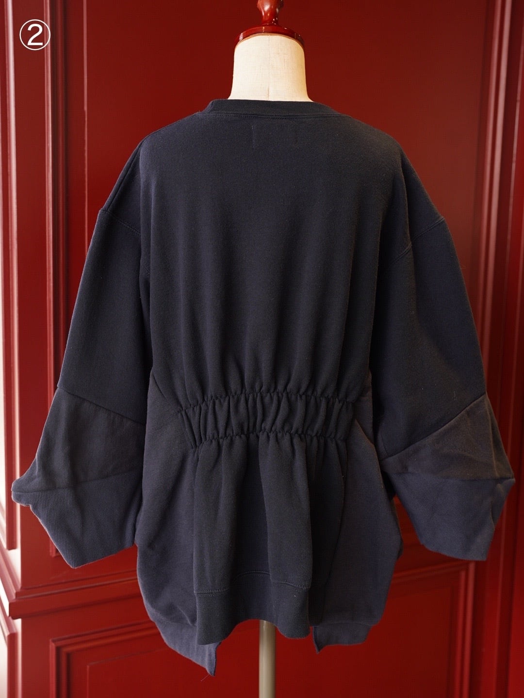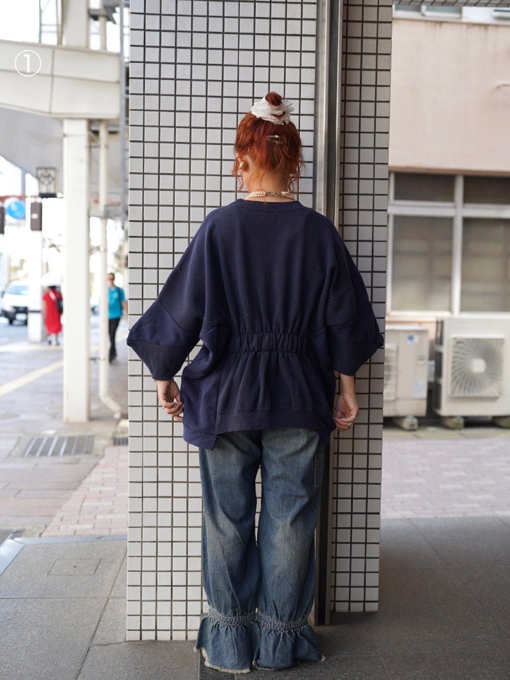 77circa(ナナナナサーカ) “ circa make waist shirring wide print sweat top(Navy)”