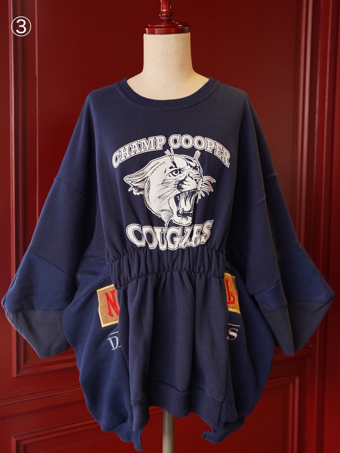 USEDのプリントスウェットを2枚組み合わせて作製した、77circaらしいリメイクトップス。