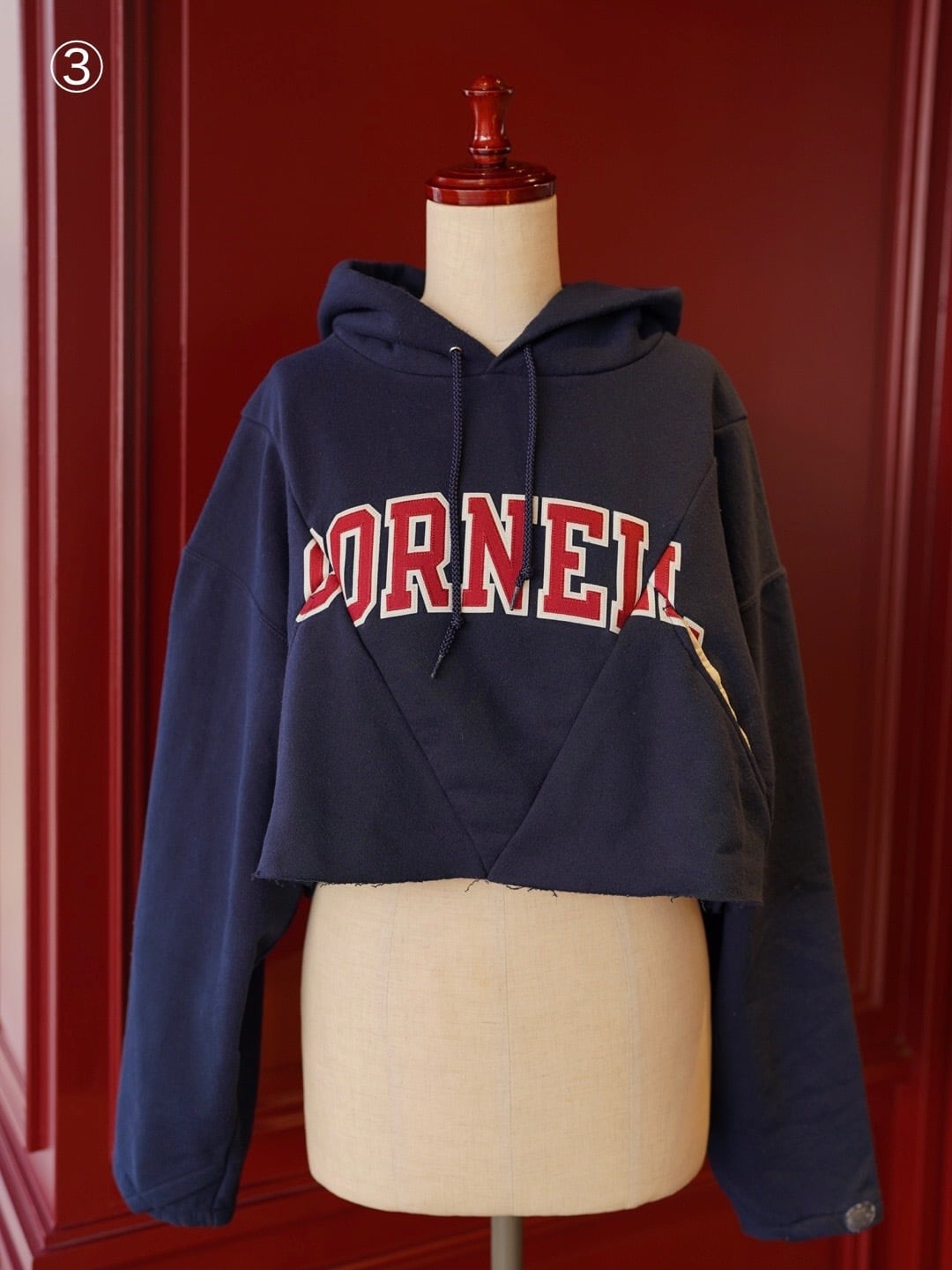 USEDのプリントフードスウェットを再構築したリメイクフーディ。