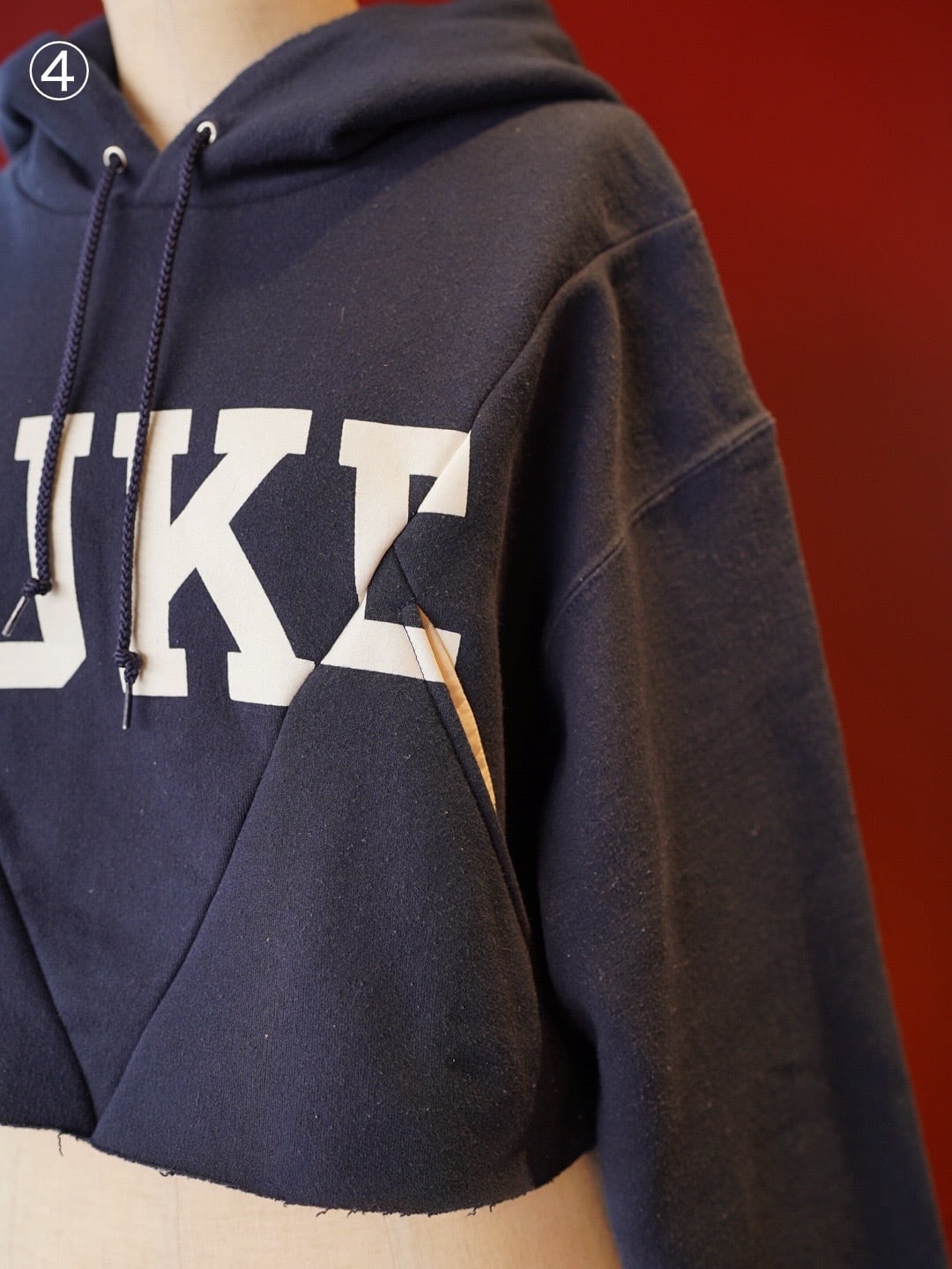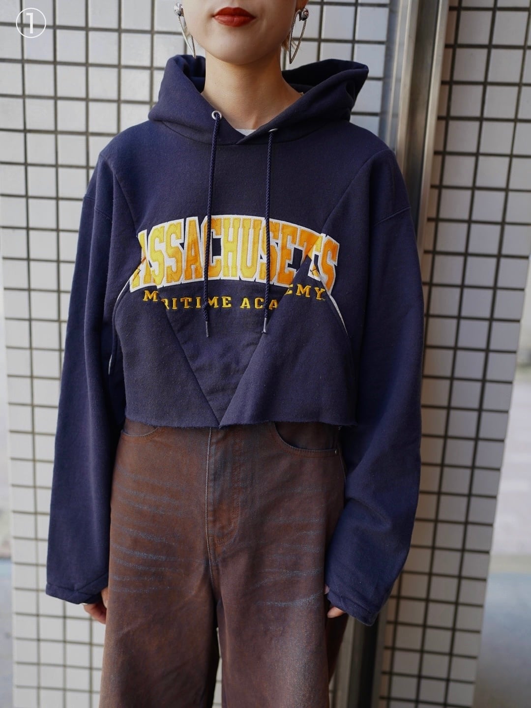 77circa(ナナナナサーカ) “ circa make v shape cutback hood sweat top(navy)”