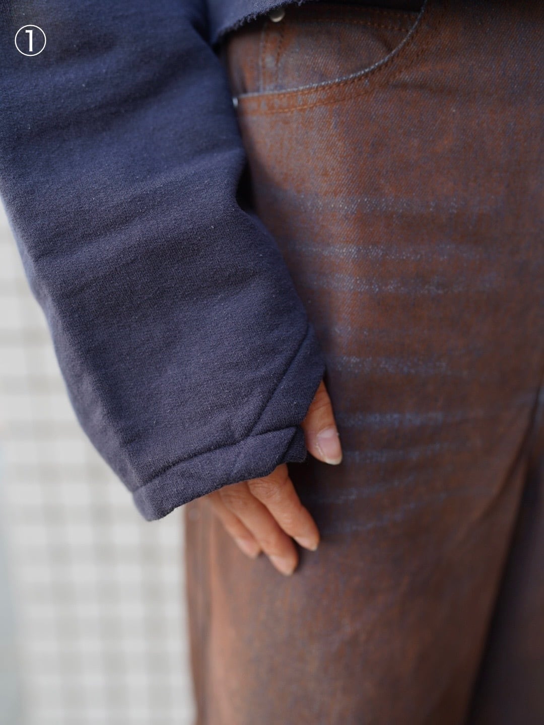 身頃外側の切り替え部分には、さりげなくポケットを配しています。