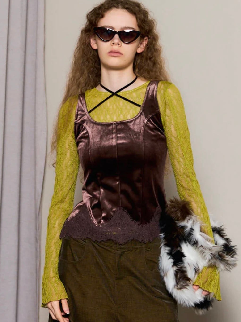 MAISON SPECIAL(メゾンスペシャル) "Hem Lace Velvet Tank Top "
