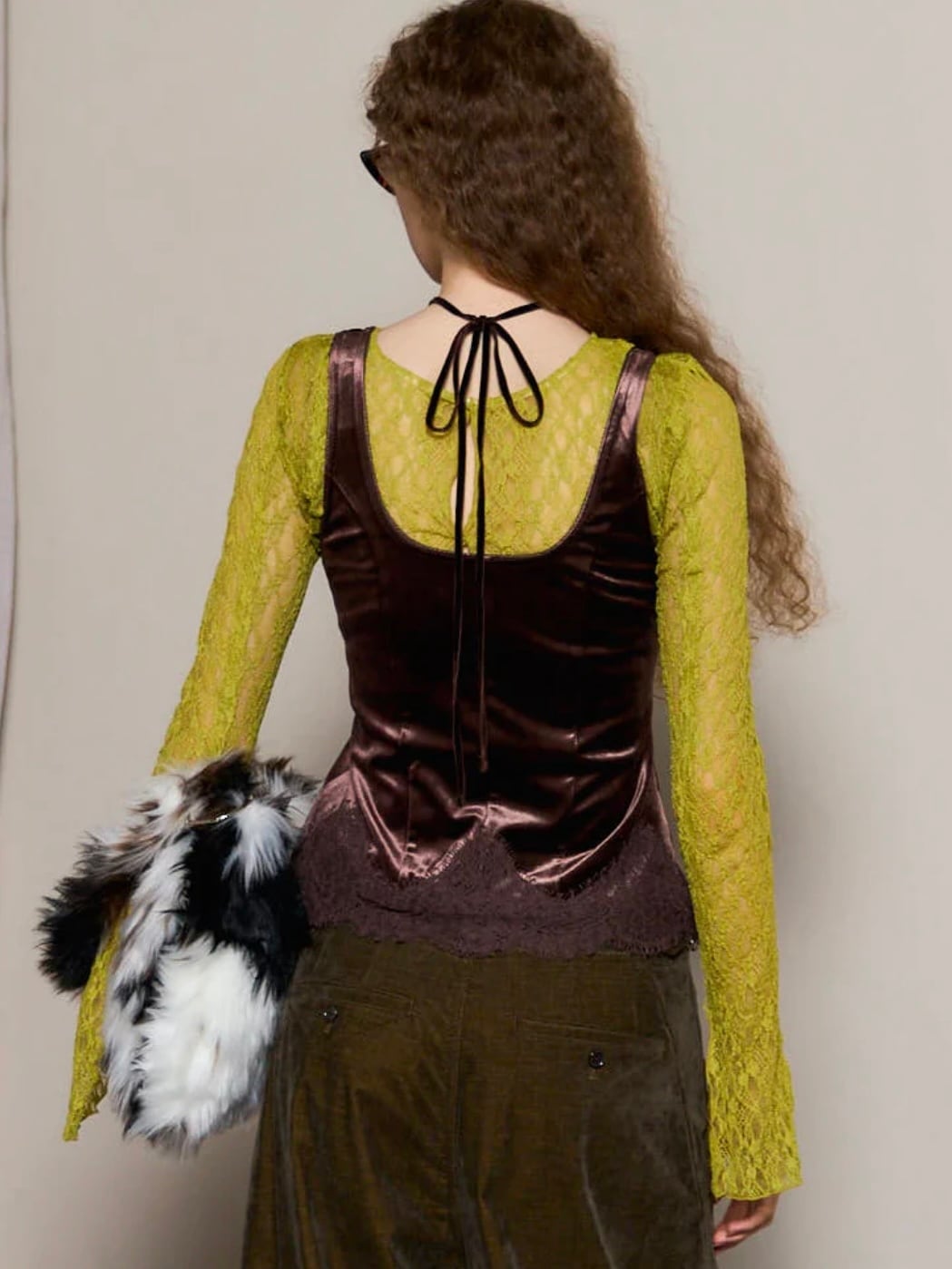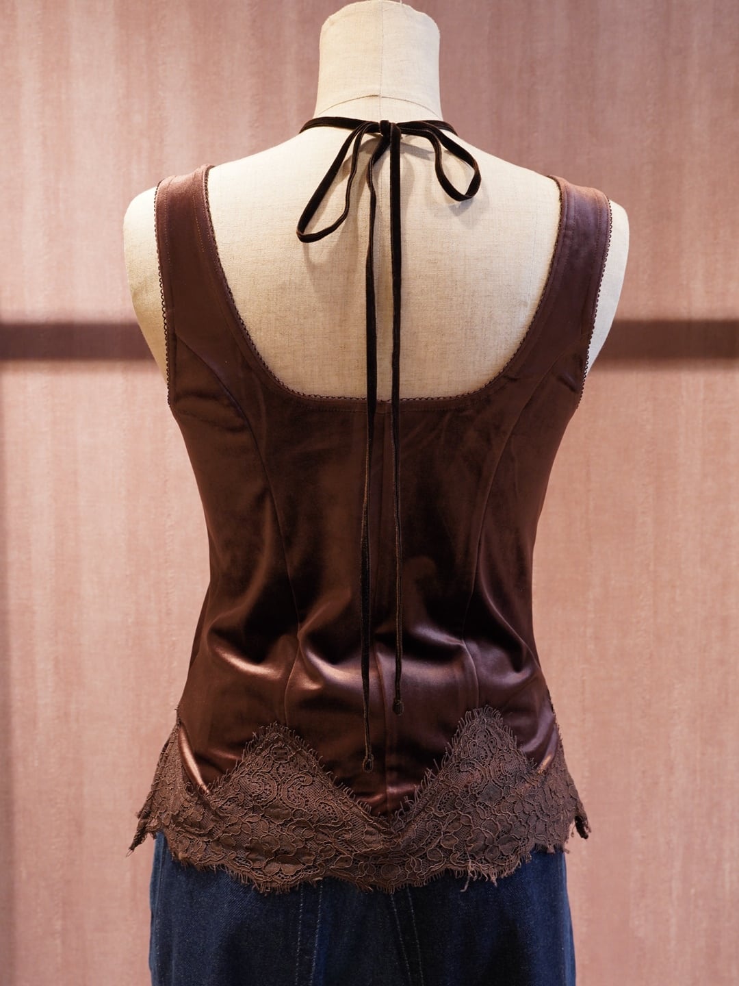・クラシカルなムードとフェミニンなエッセンスが絶妙にミックスされたベルベットキャミソール。