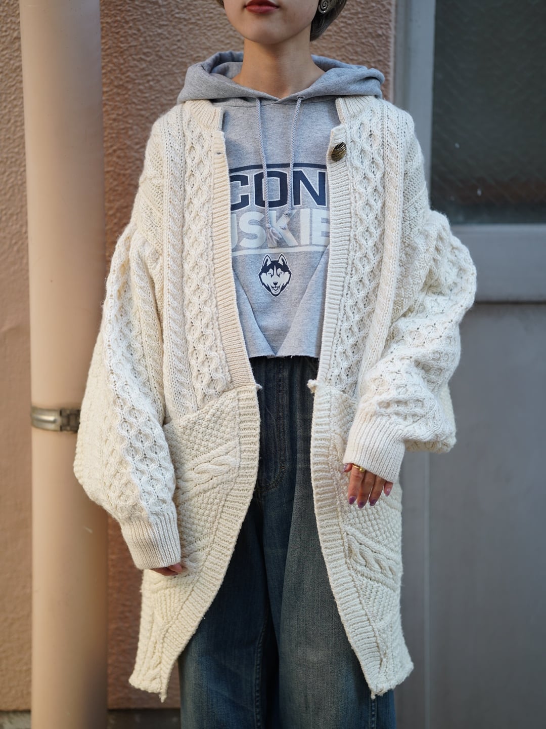 USEDのフィッシャーマンカーディガンを2枚解体し、再構築した 77circa の “circa make tyrolean sweater”。