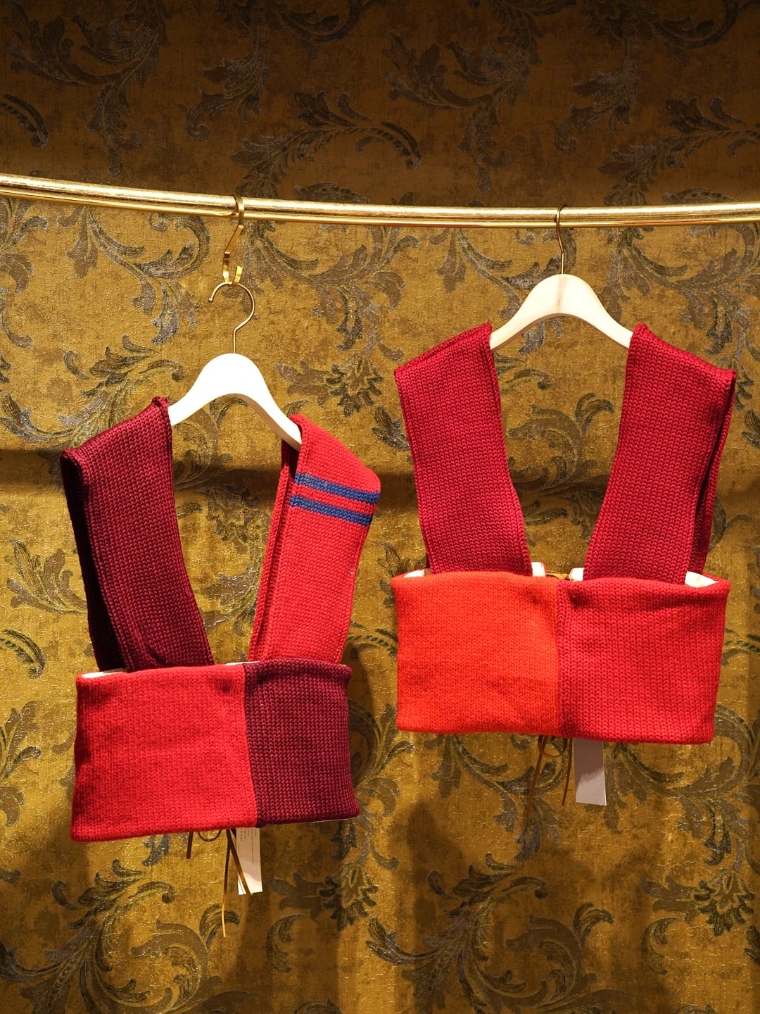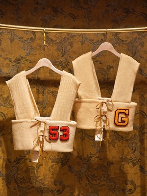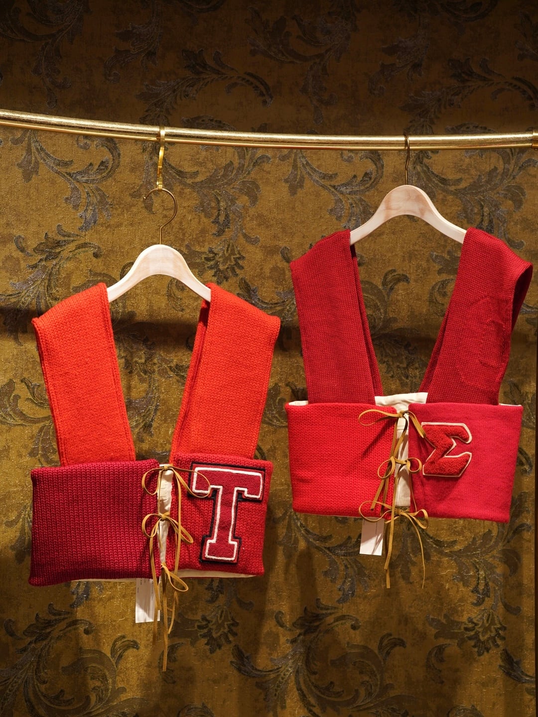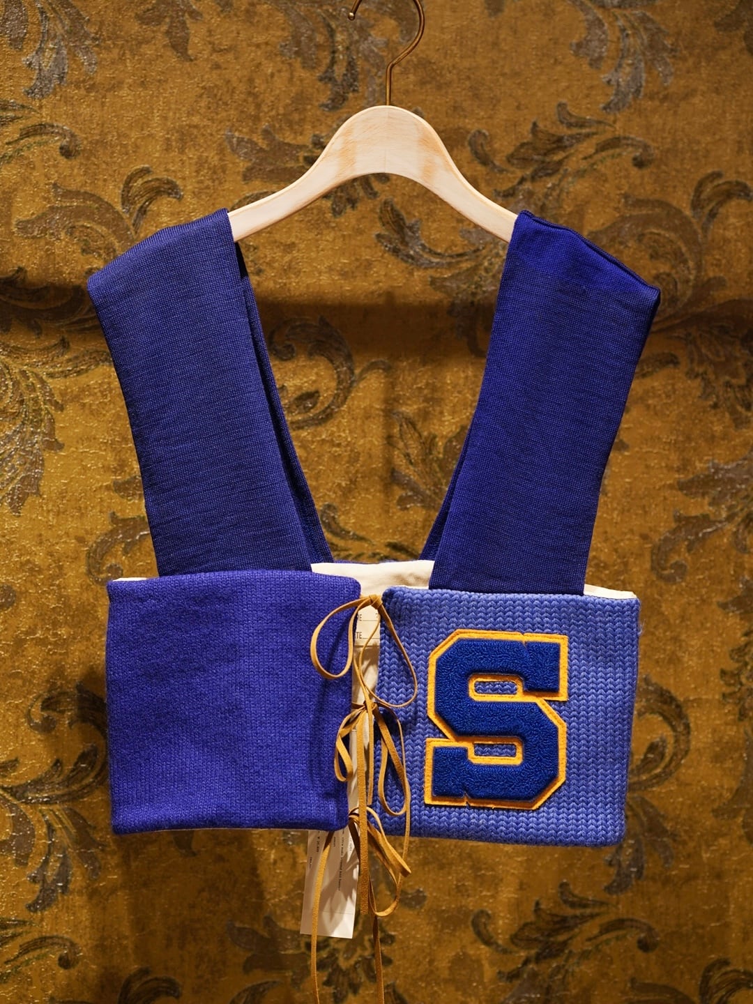 USEDのレタードカーディガンを2.3枚使用し、再構築したビスチェ。
