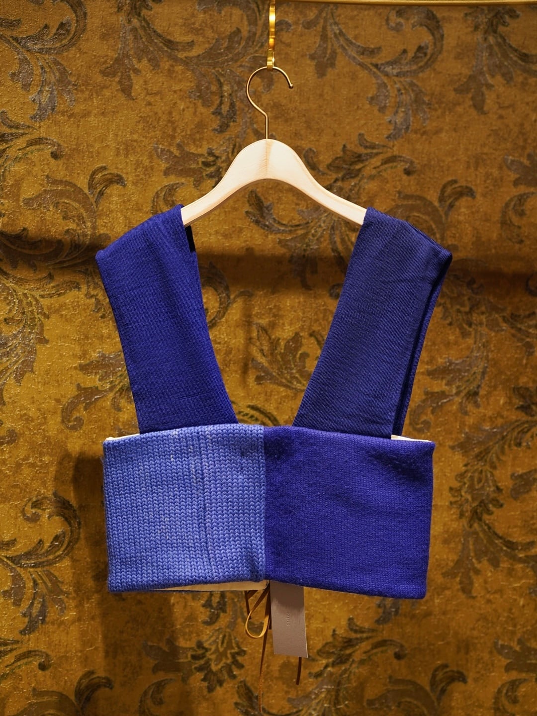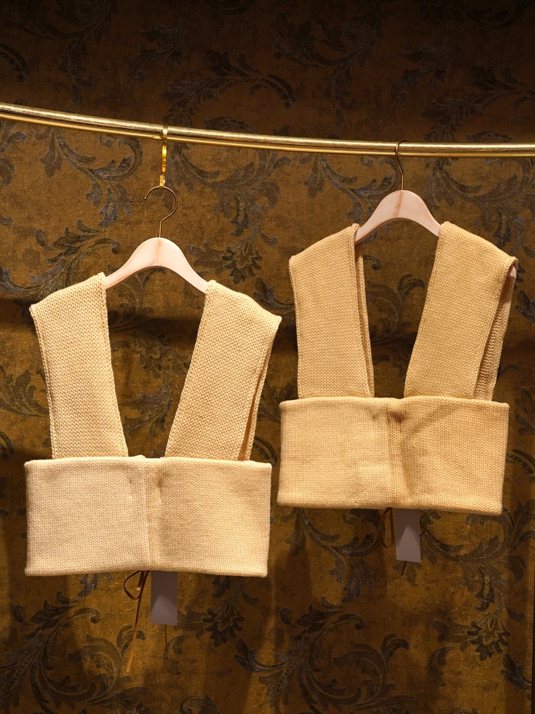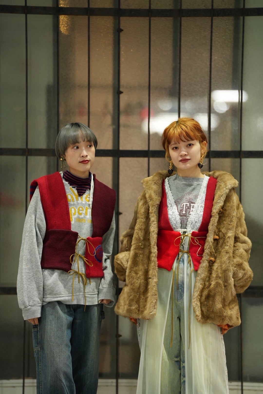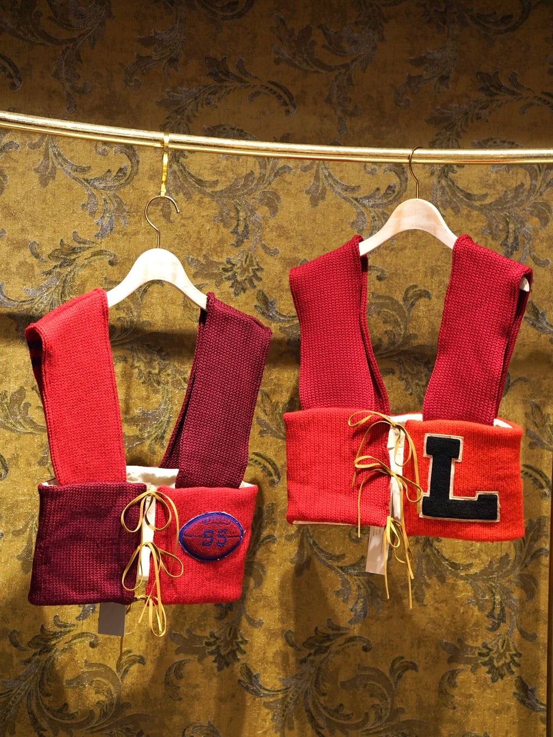 USEDのレタードカーディガンを2.3枚使用し、再構築したビスチェ。