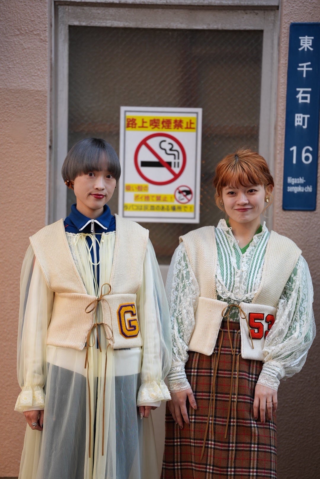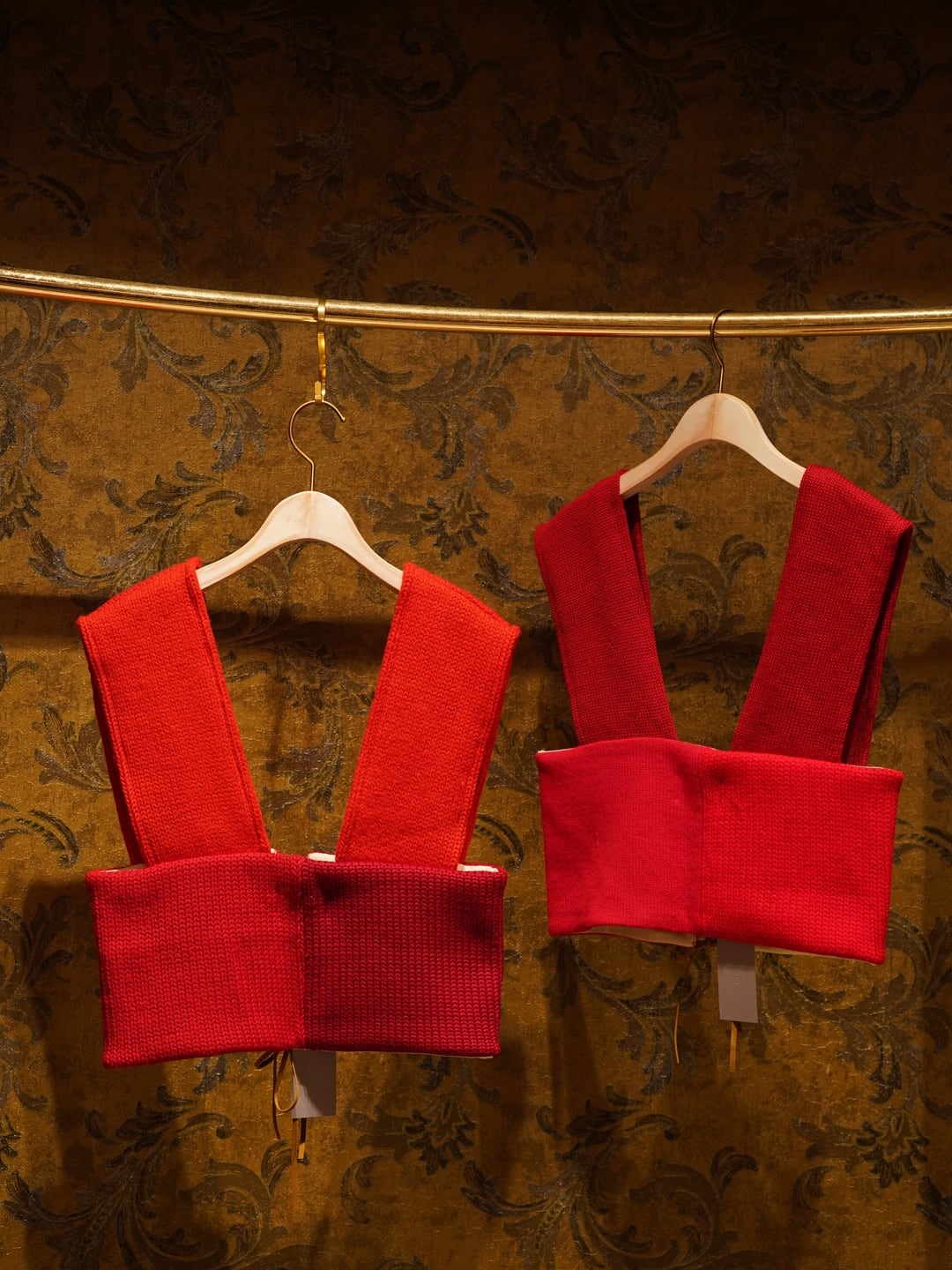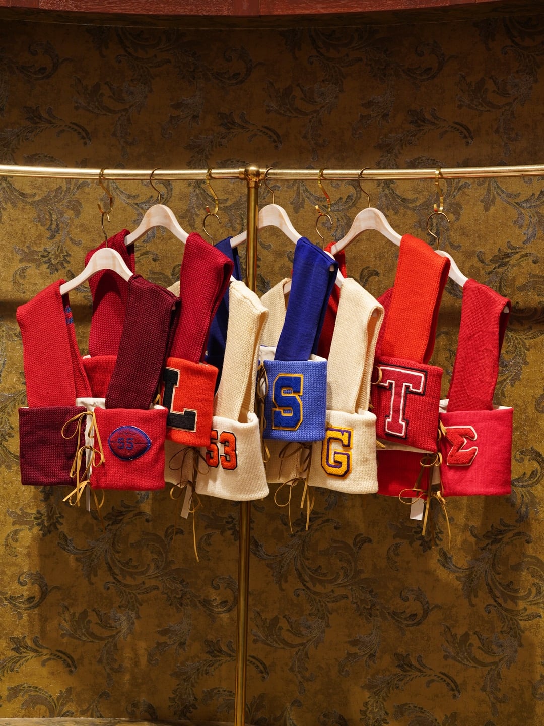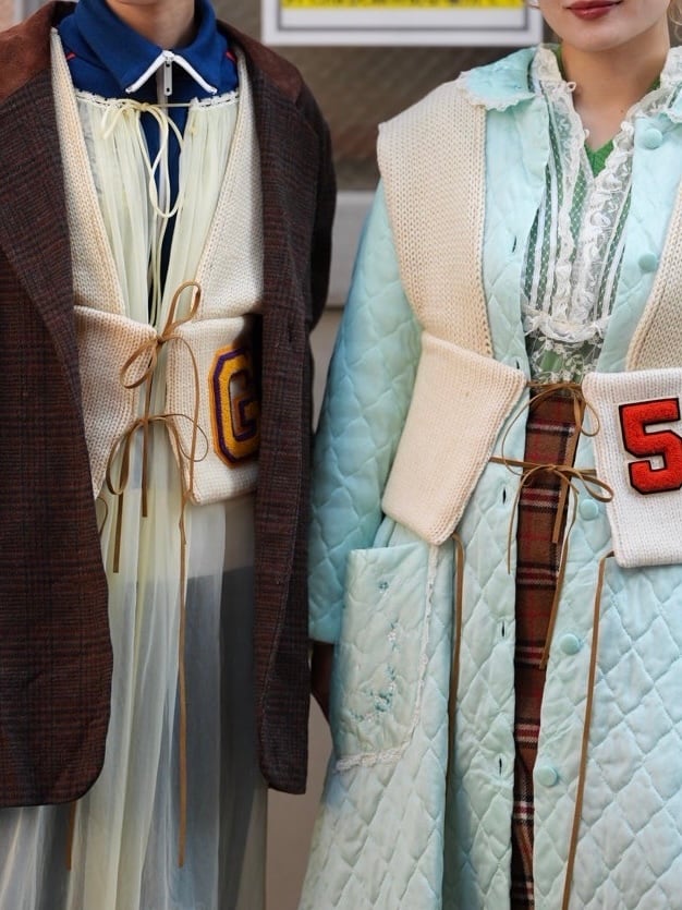 USEDのレタードカーディガンを2.3枚使用し、再構築したビスチェ。