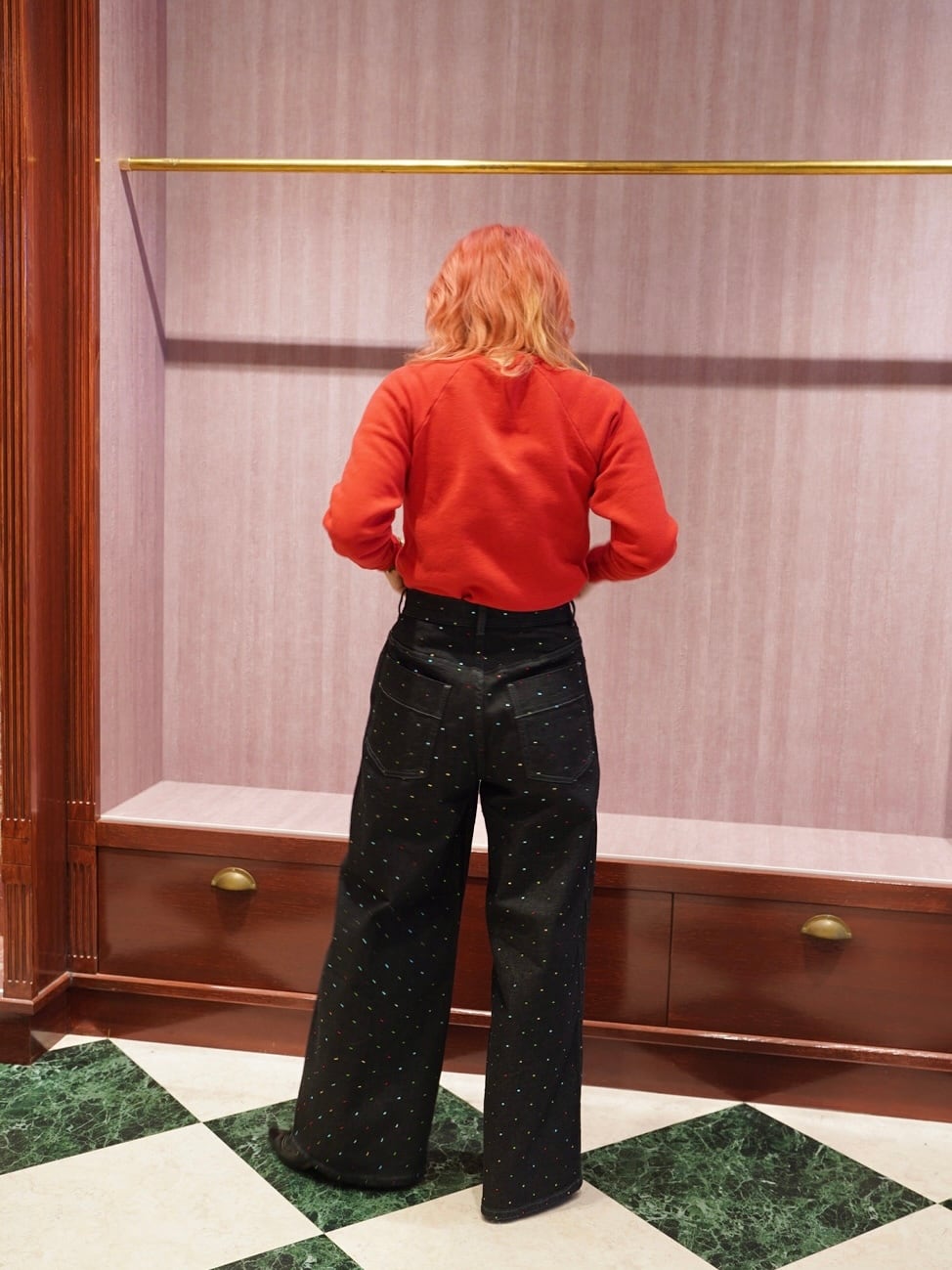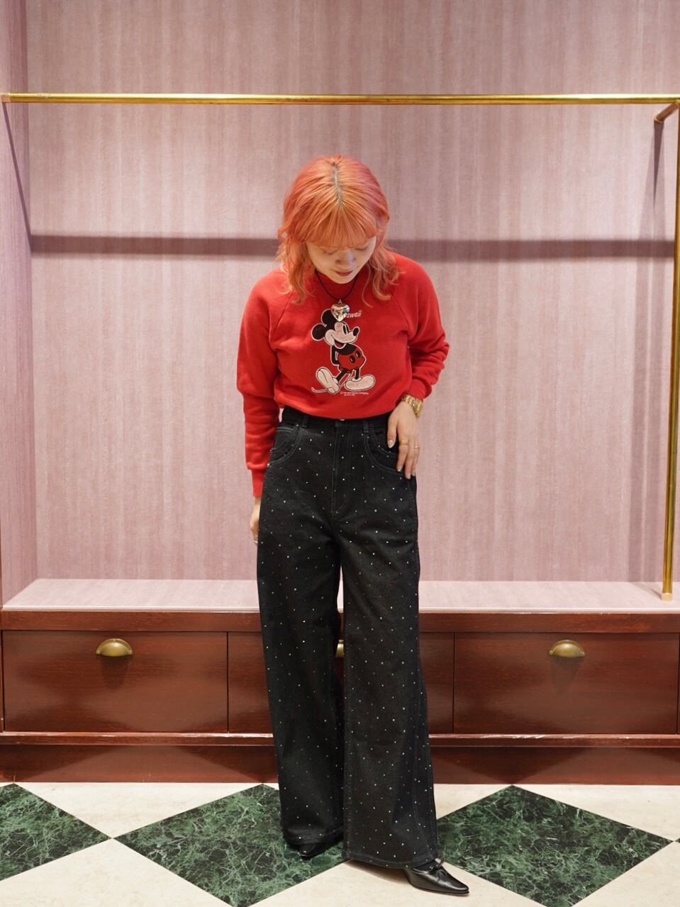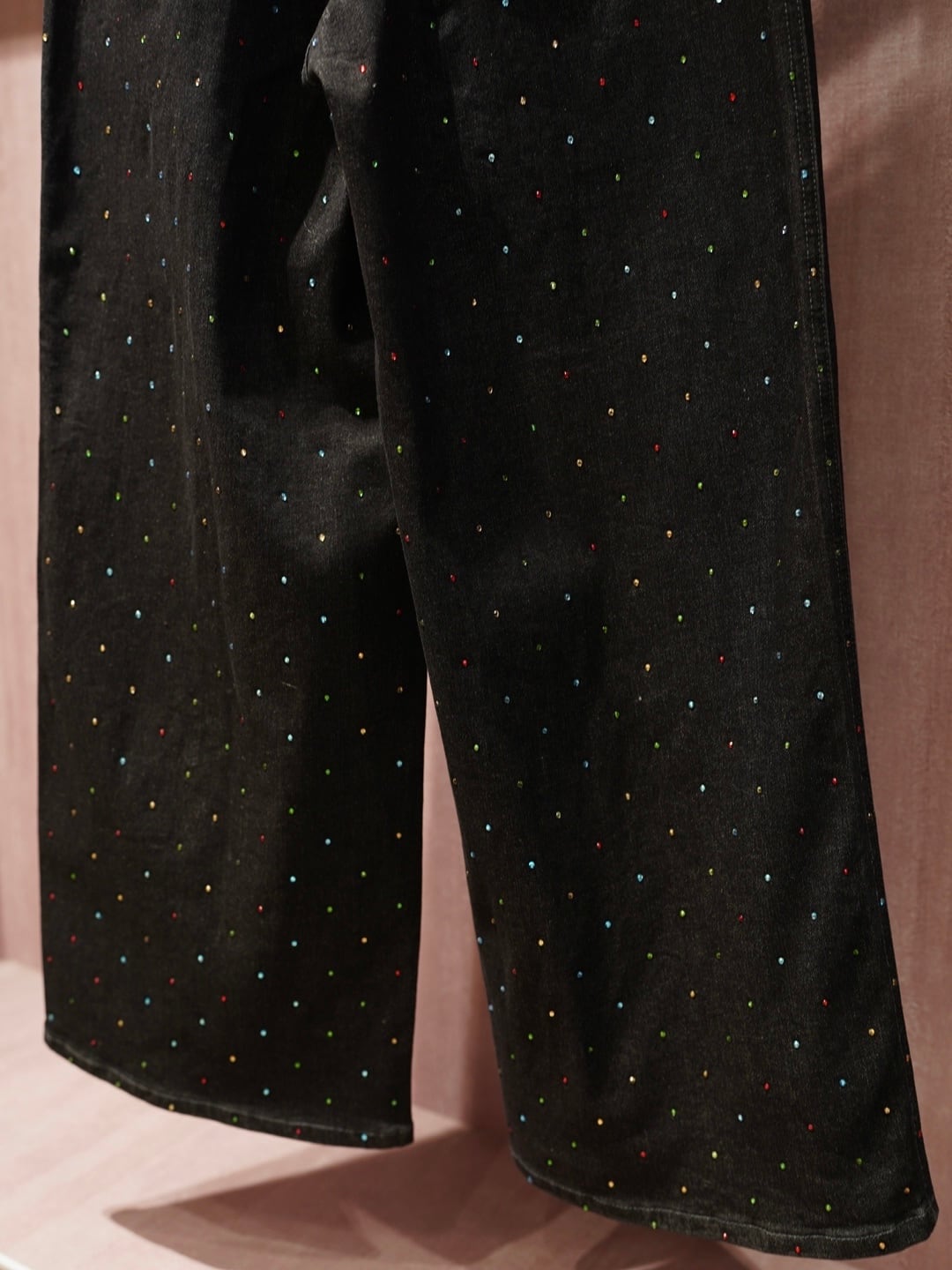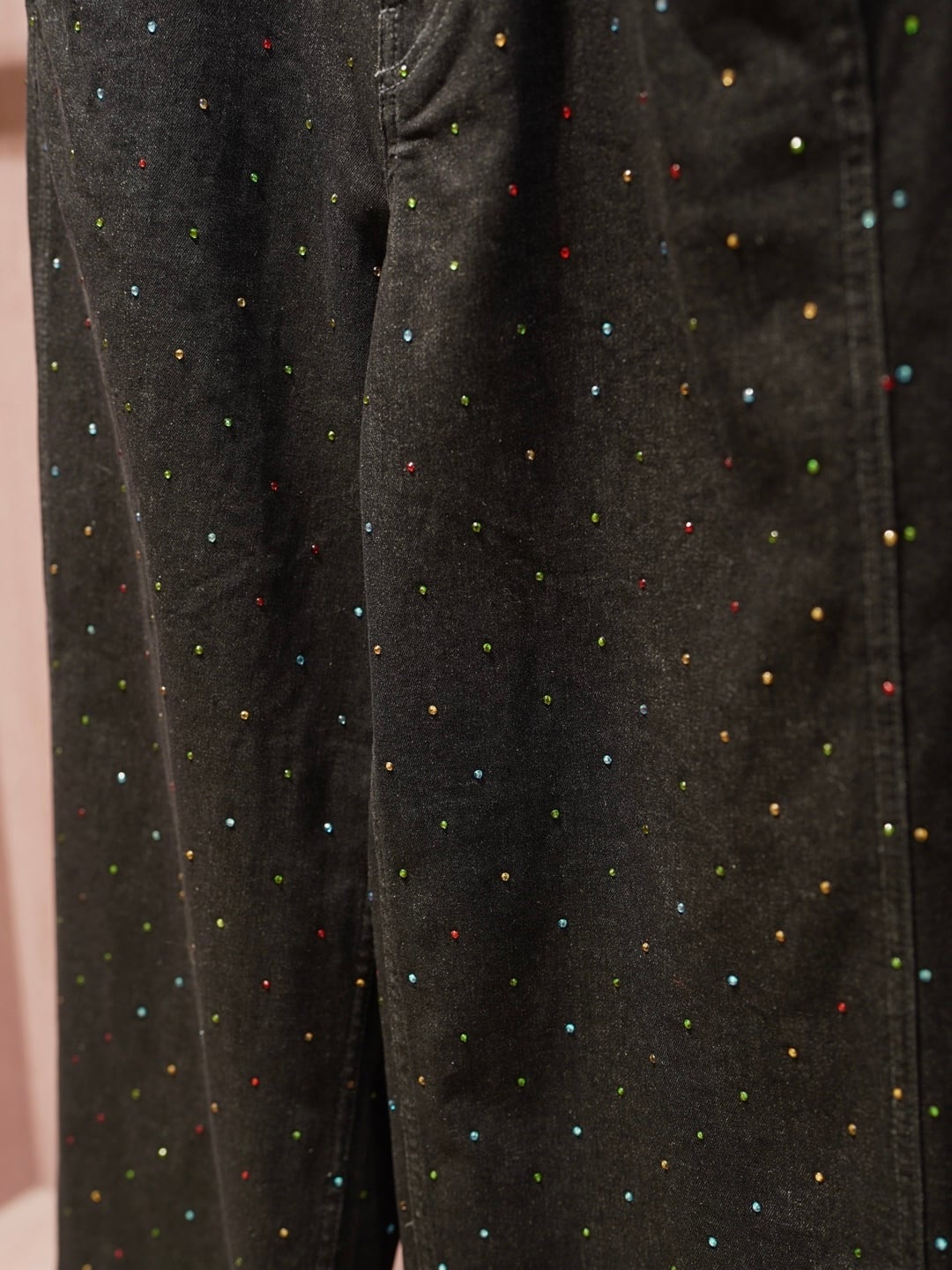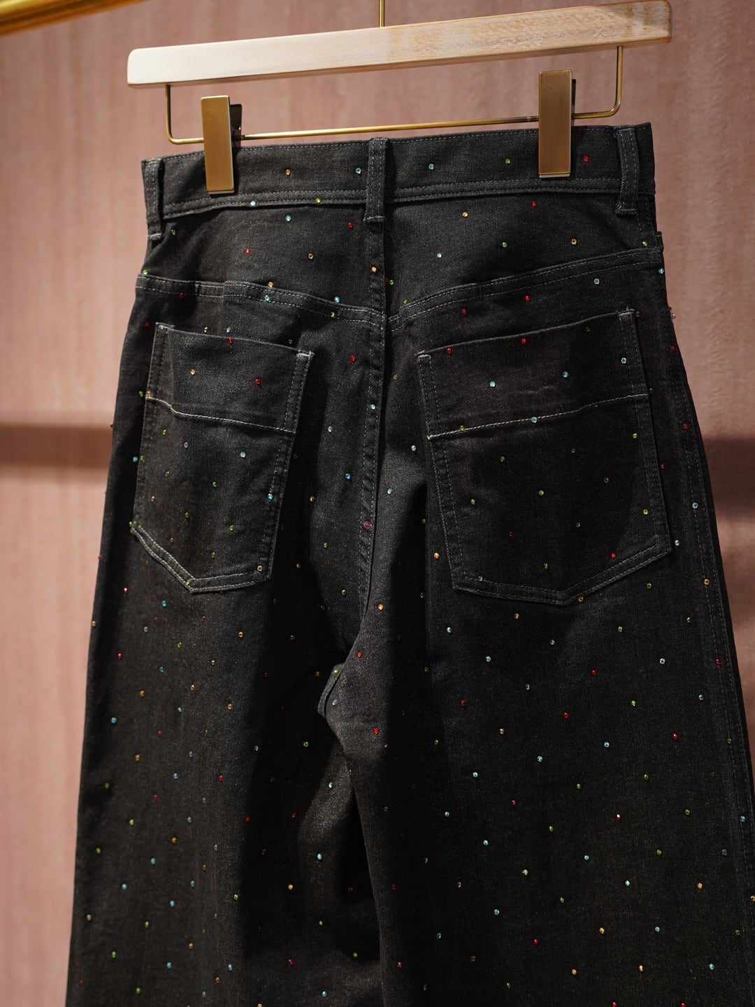 カラフルなラインストーンを散りばめ、ベーシックなデニムに華やかさをプラスしました。