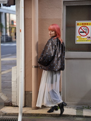 立体感と光沢が際立つジャガードに遊び心のあるドットを組み合わせることで、モードとフェミニンを両立したデザインに仕上げました。