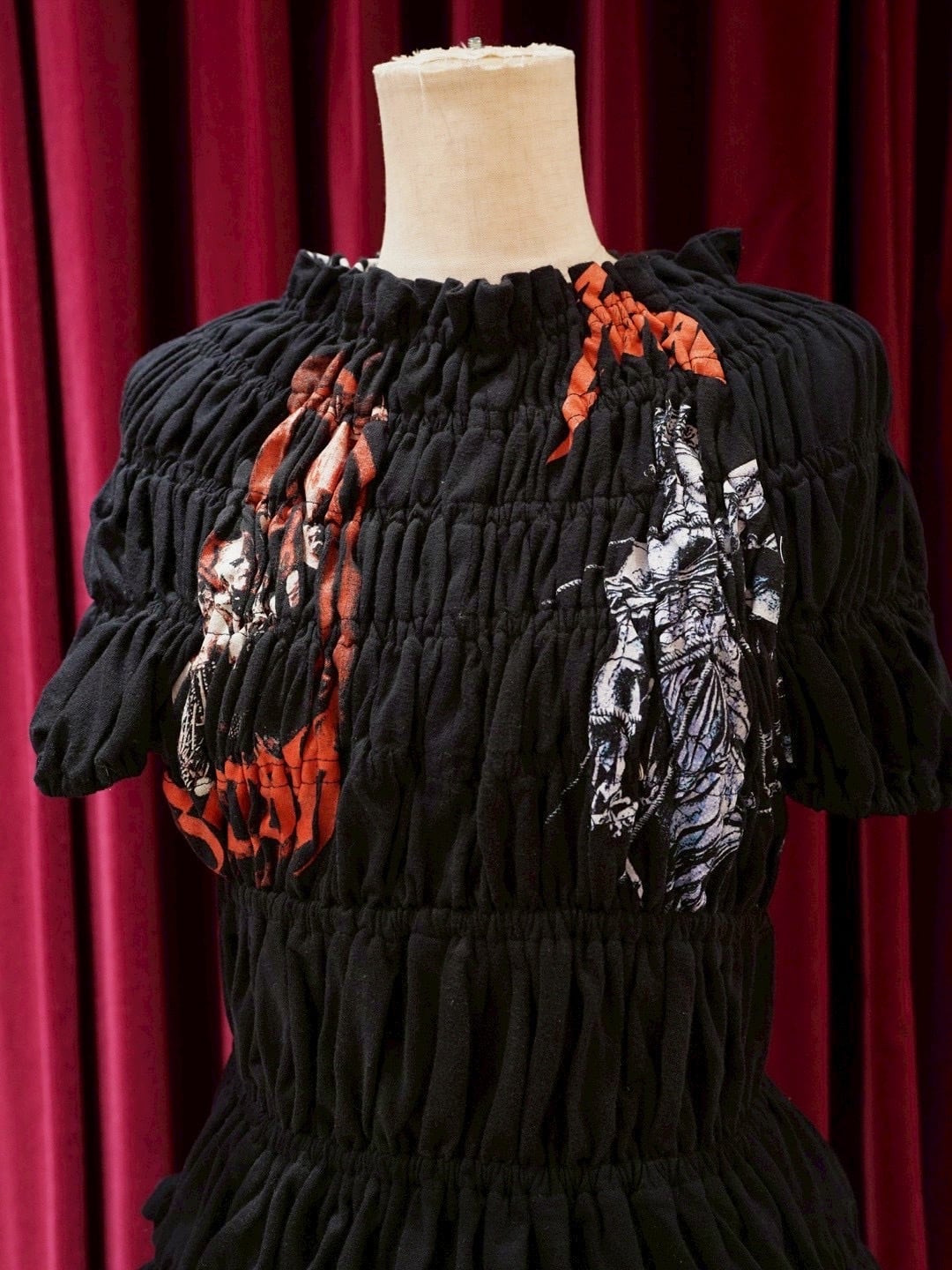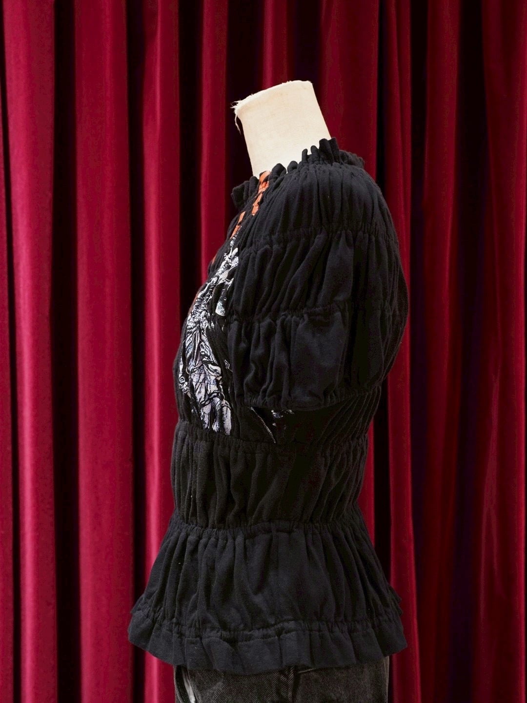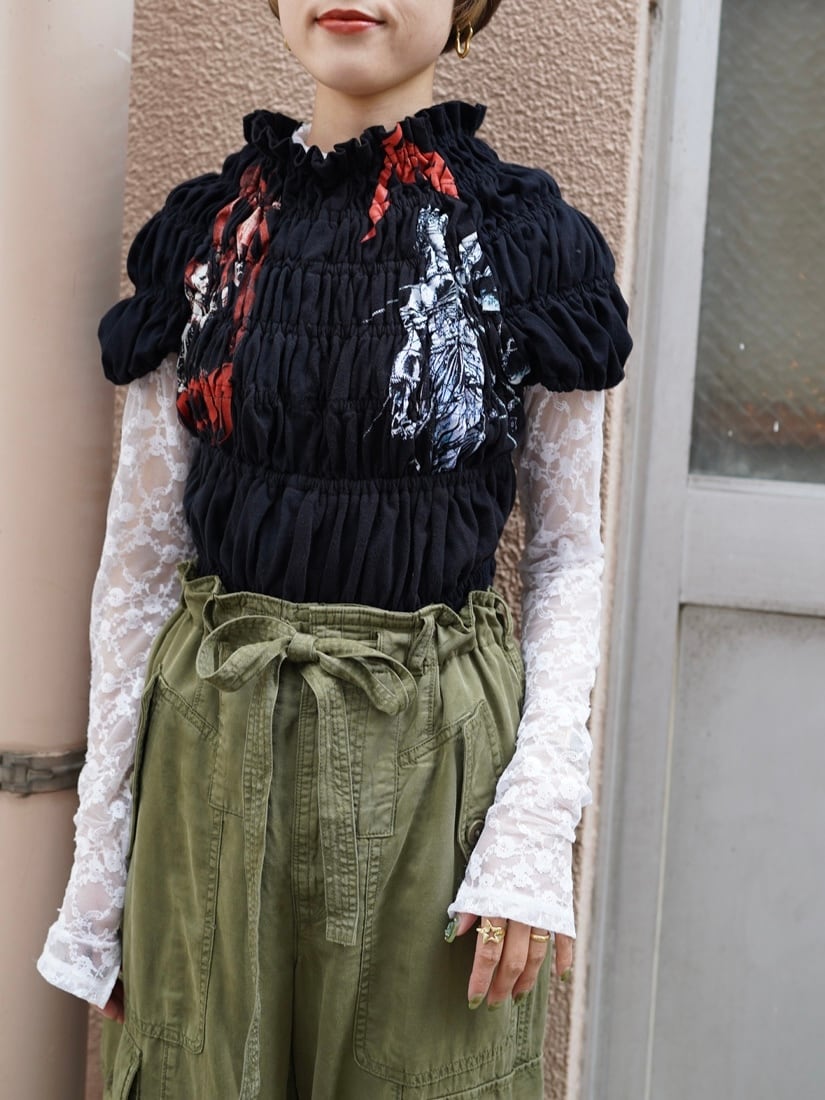 77circa (77サーカ) “circa make shirring print top【BLACK】”