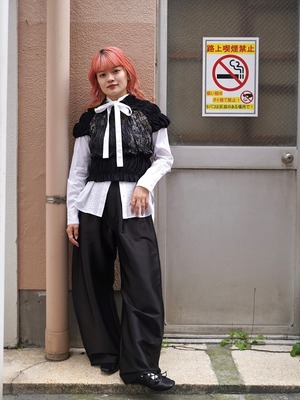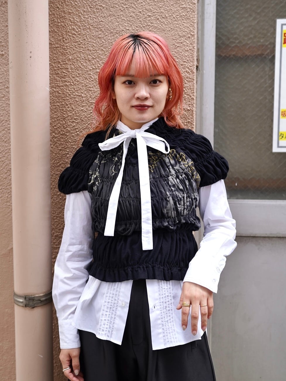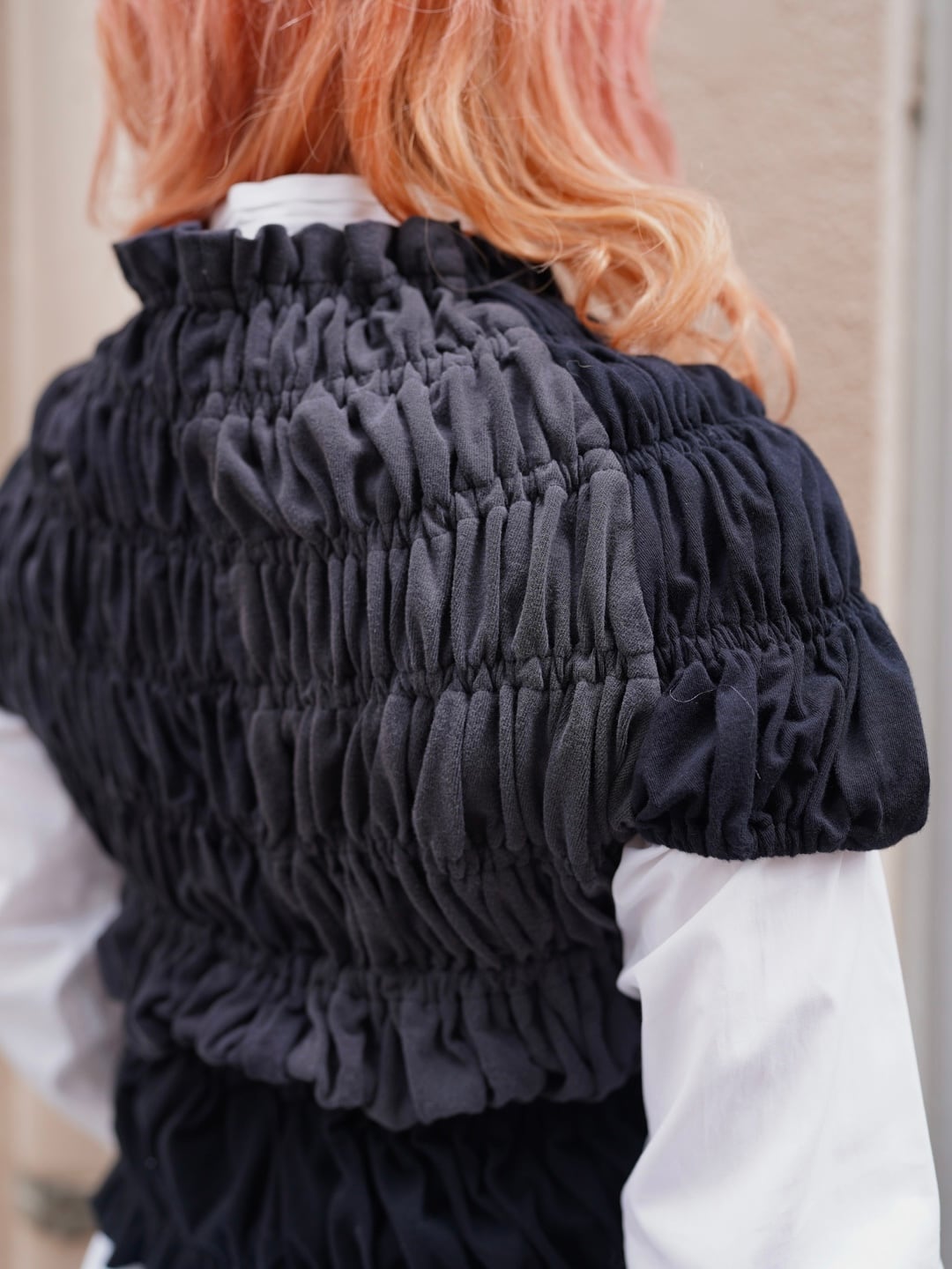 コンパクトなシルエットですが、シャーリング仕様のため伸縮性があり、幅広いサイズの方に着ていただけます。