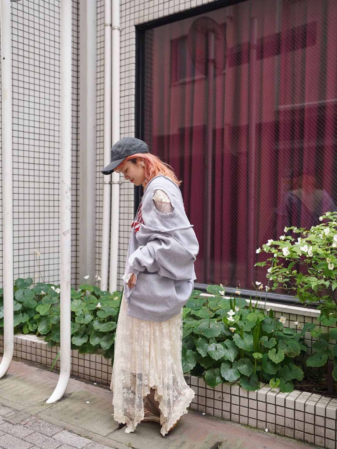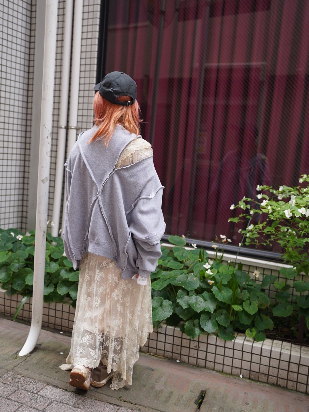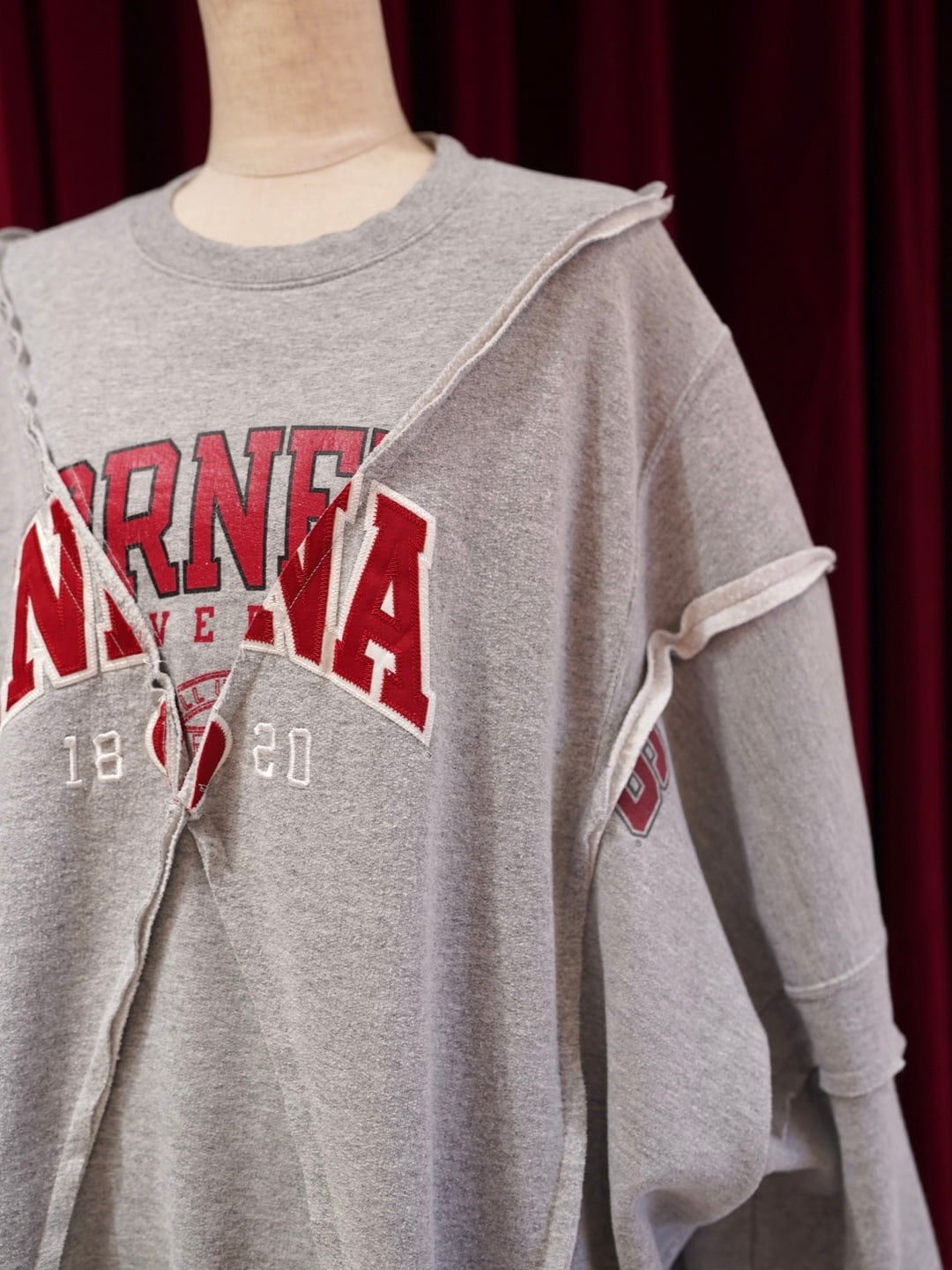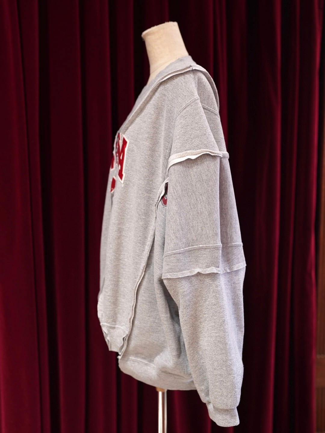 usedスウェットを3枚使用してリメイクされた特別な一着です。