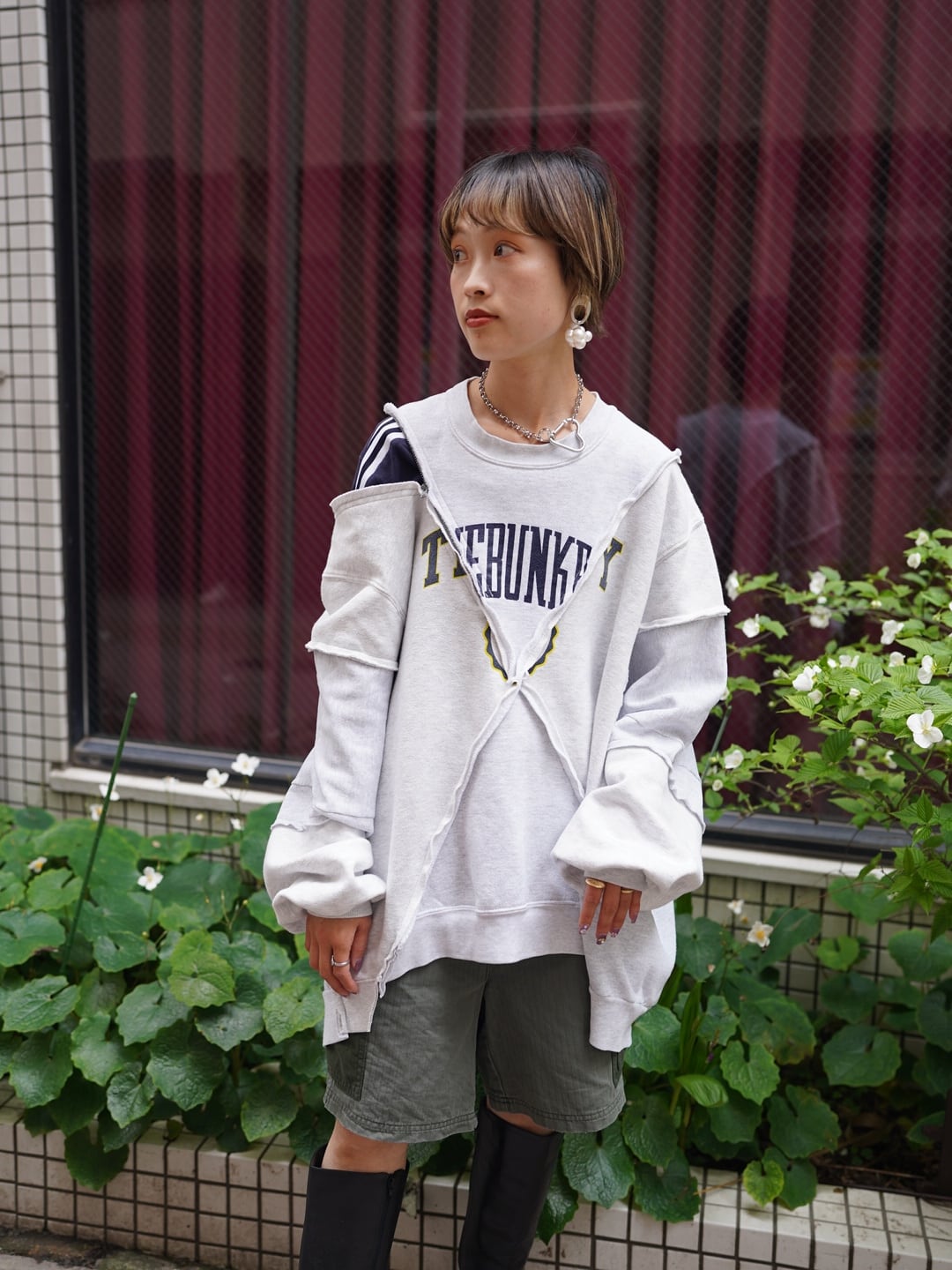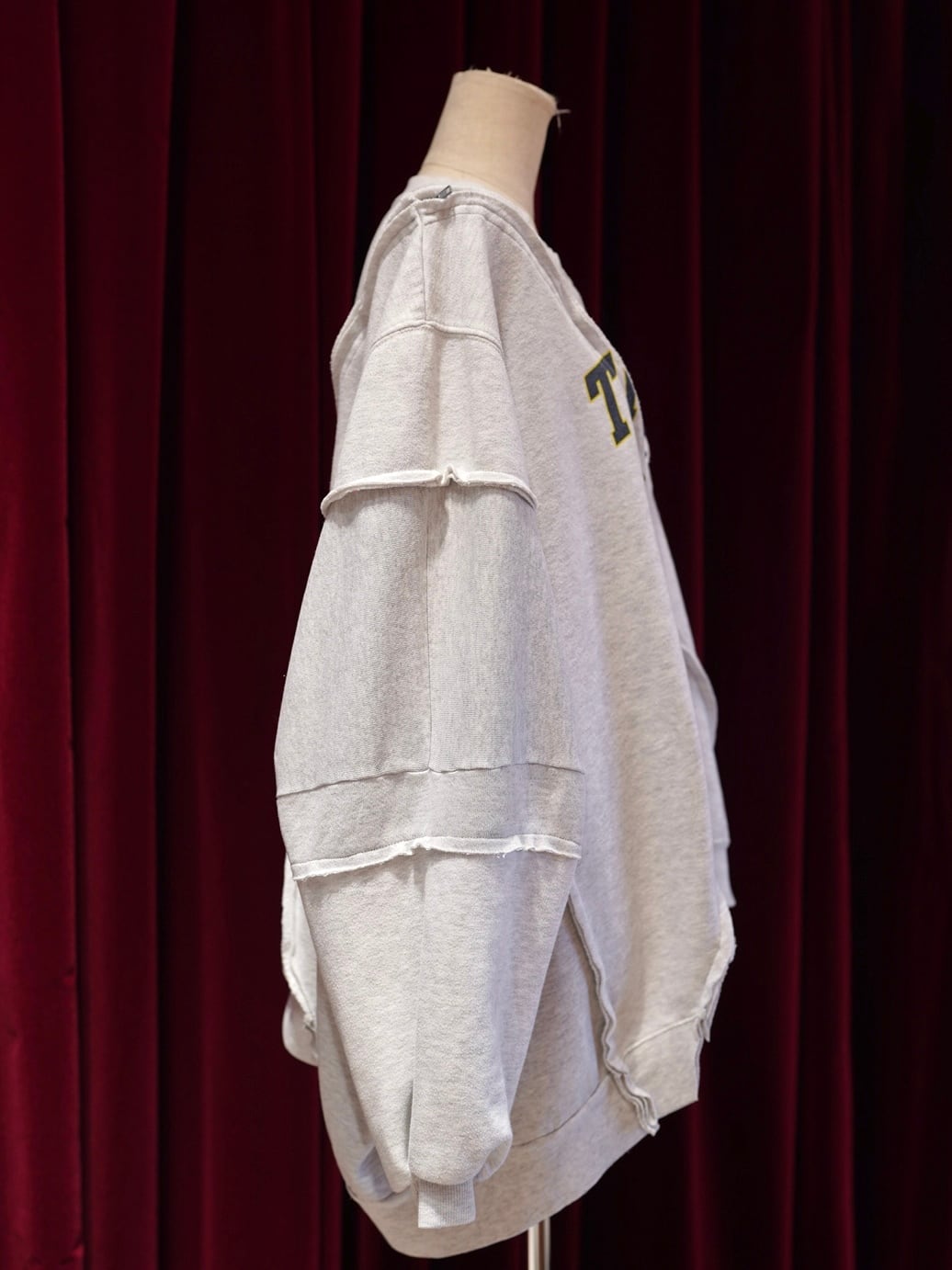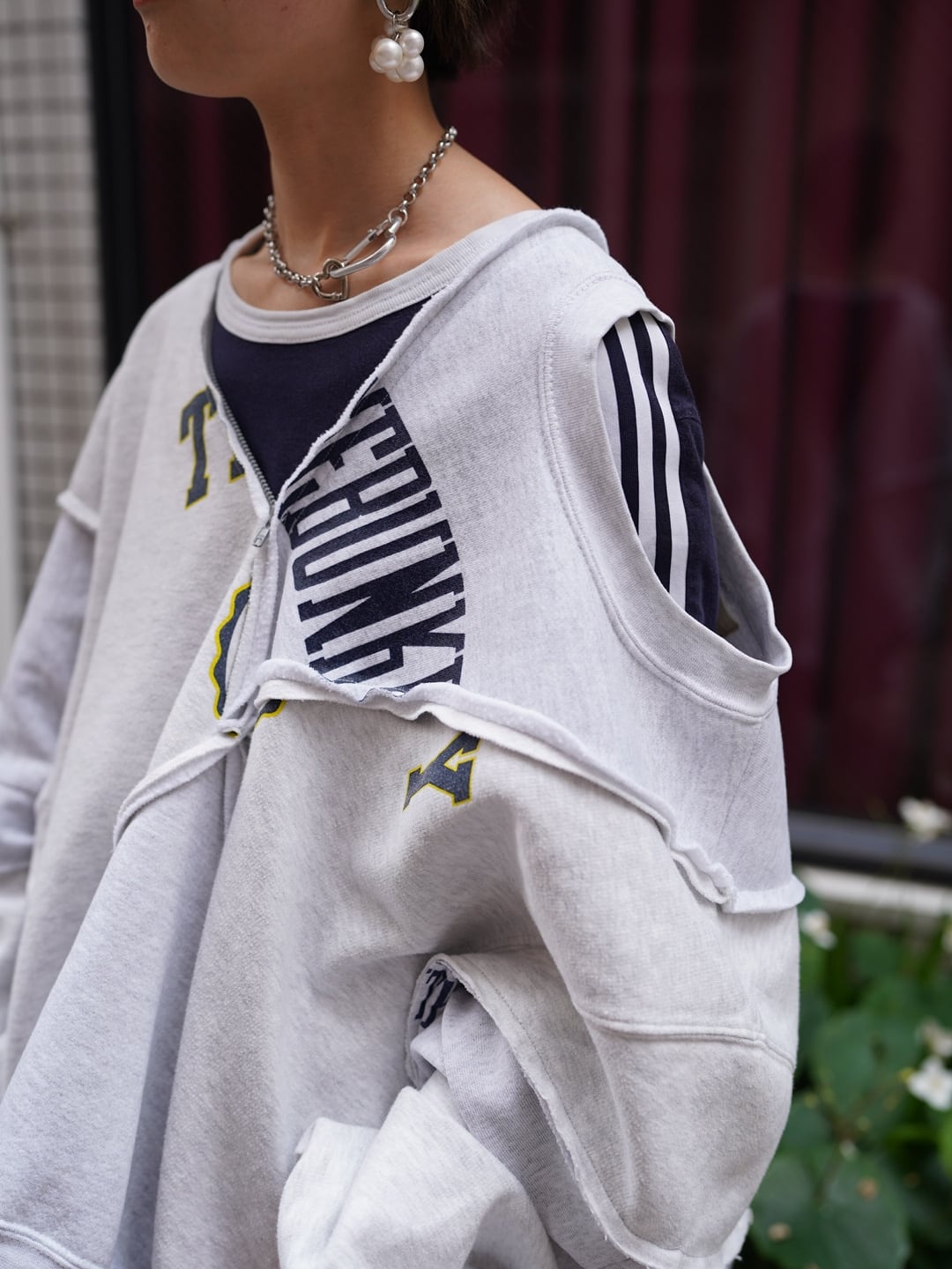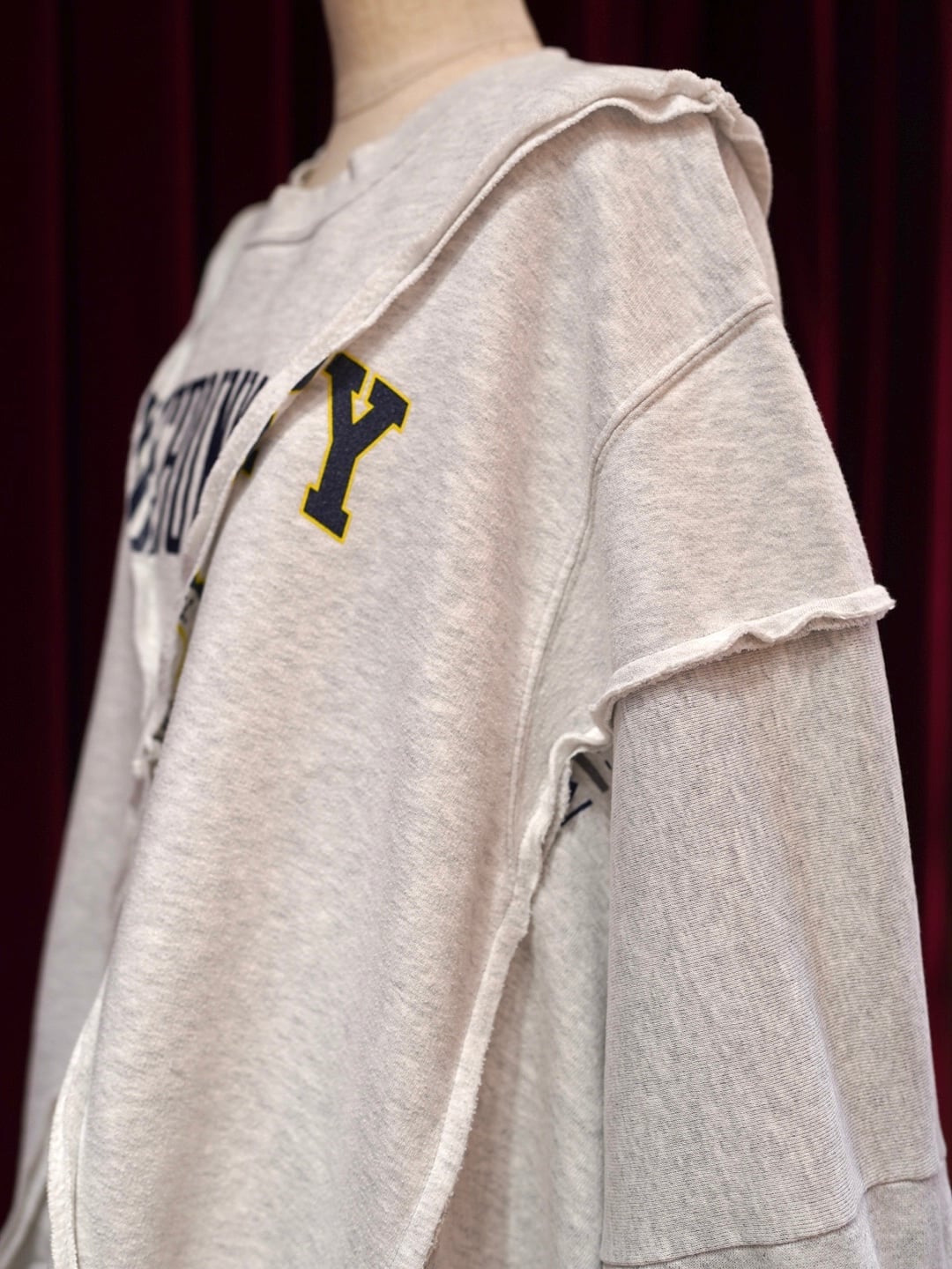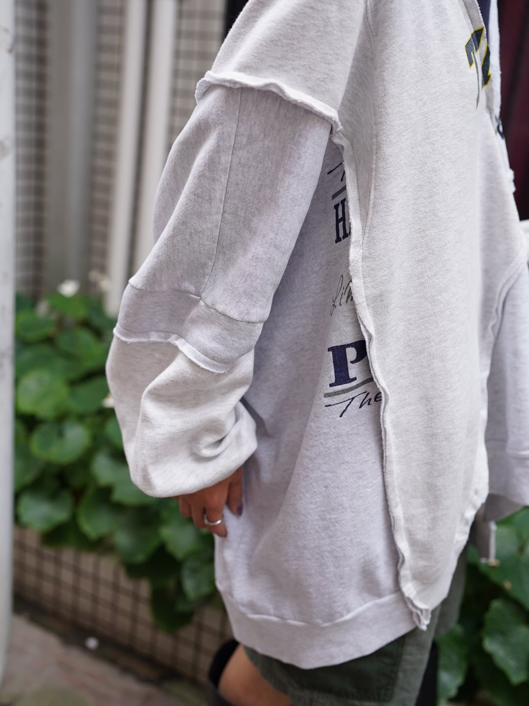 usedスウェットを3枚使用してリメイクされた特別な一着です。