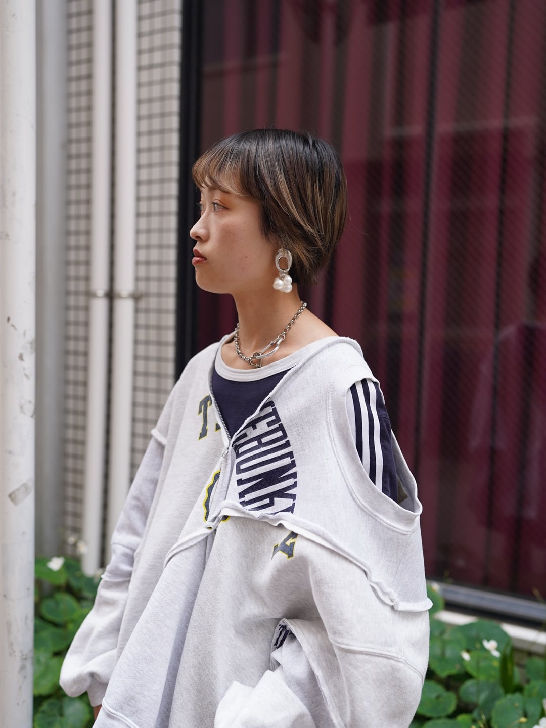 ◾️袖を通さず、ジップ部分から腕を出してワンショルダーでの着用も。