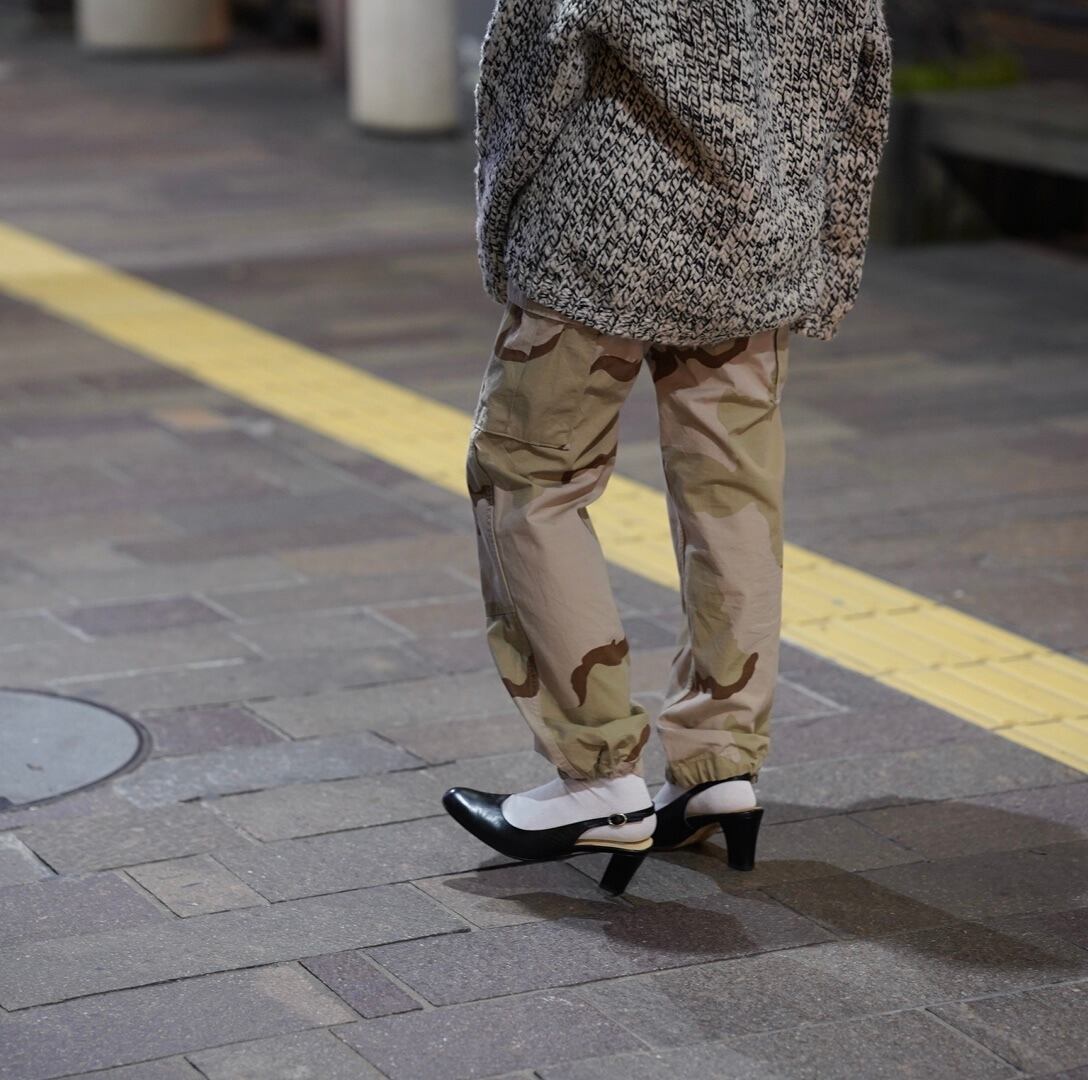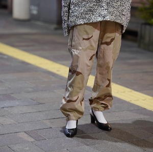 ミリタリーのデザートカモフラージュ柄のパンツ