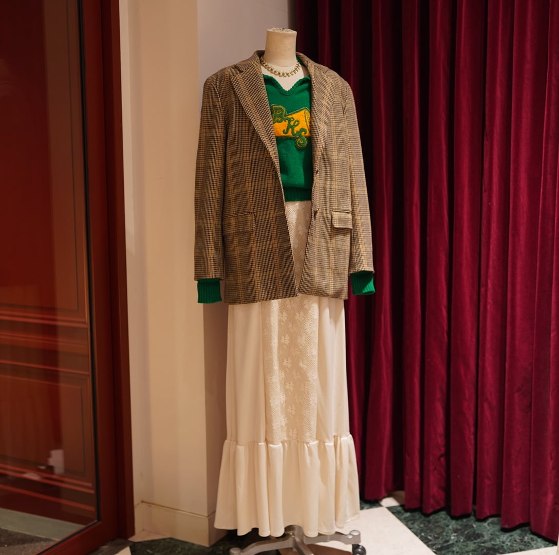 ロマンティックなワンピースやスカートで外して着るのもオススメです。