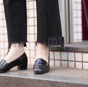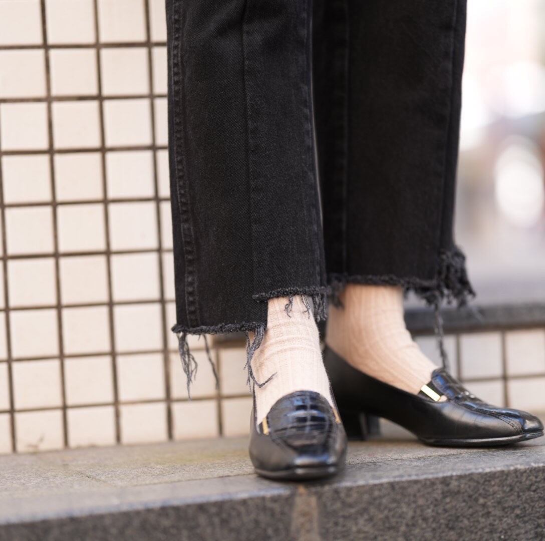 ストレートなシルエットでどんなトップスにも合わせやすい。