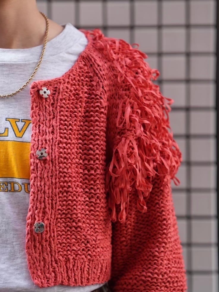 RhodolirioN(ロドリリオン) “Fringe Cardigan-Ribbon Yarn”