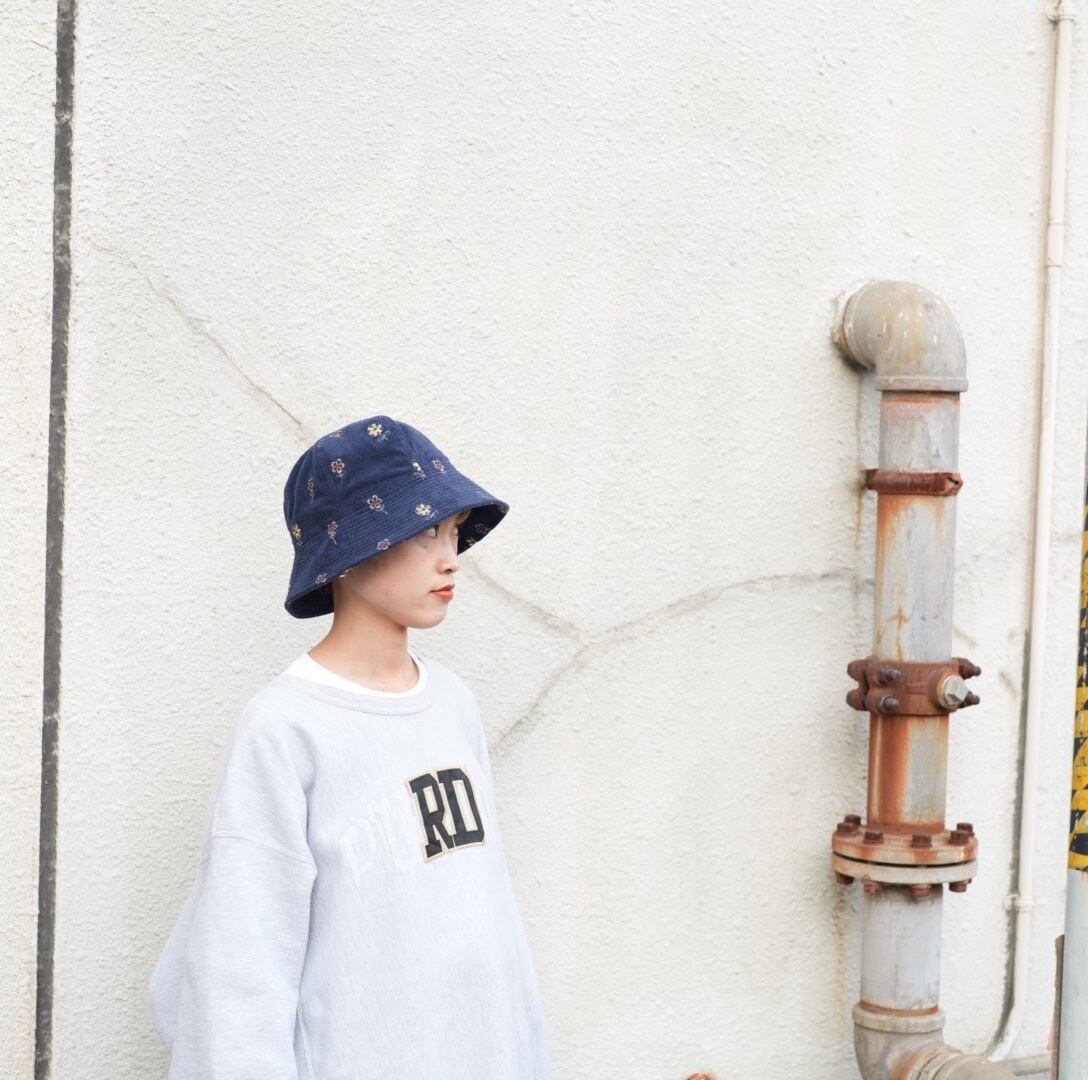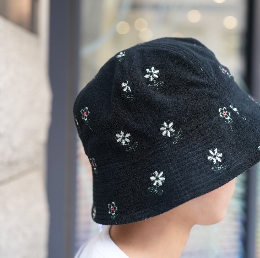 毛足の短い上質なパイルに小花柄の刺繍を施しました。天井は平天風に丸みを抑え、ツバからクラウンにかけてのステッチを施すことで程よいハリ感を与え、緩やかで綺麗なカーブのシルエット。