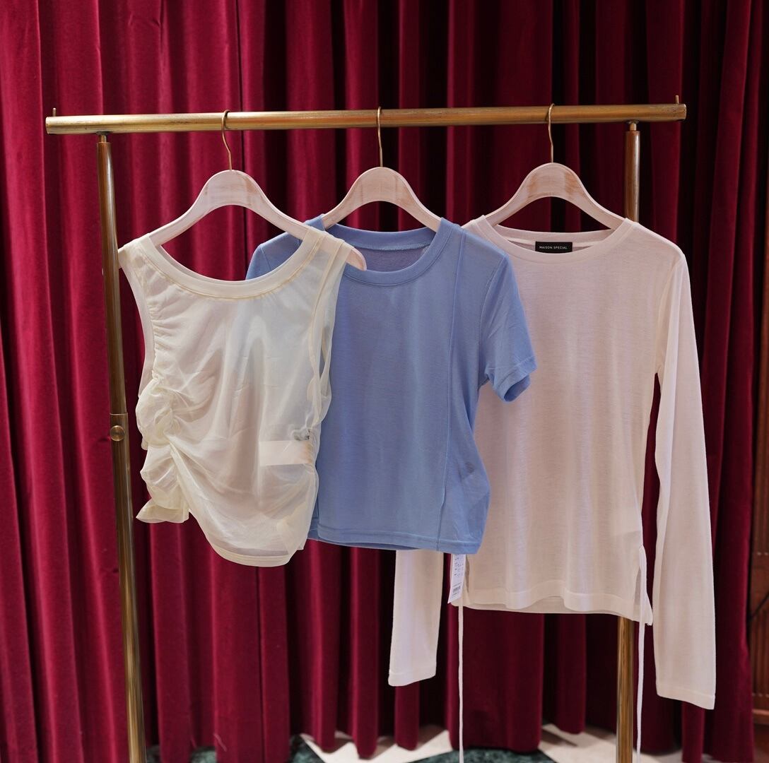ハイゲージの編み機で作られた繊細なシアーカットソー。