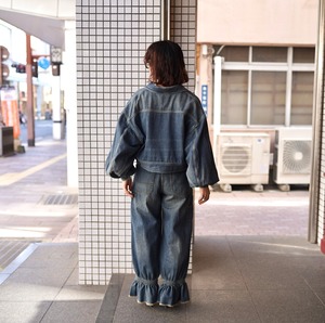 ワークウエアの中でも代表的なジップアップデニムジャケットを<RHODOLIRION>らしいアレンジでロマンティックに昇華。リアリティのあるカラーリング・ダメージ加工が施され、ヴィンテージ感あるワークウェアのムードが漂います。ウォッシュ加工を施した8オンスデニムなので軽やかにお召いただけます。